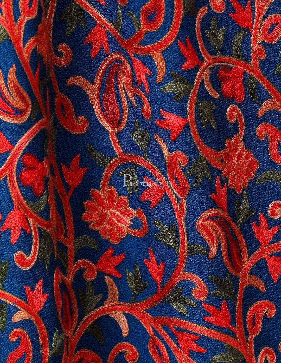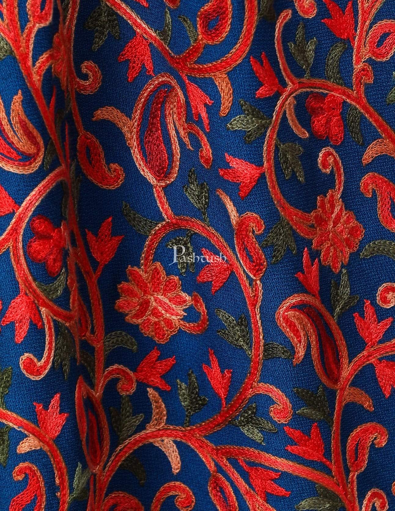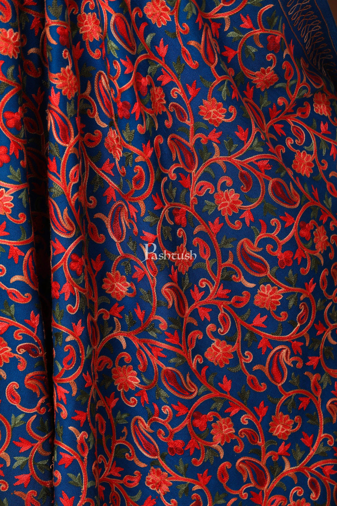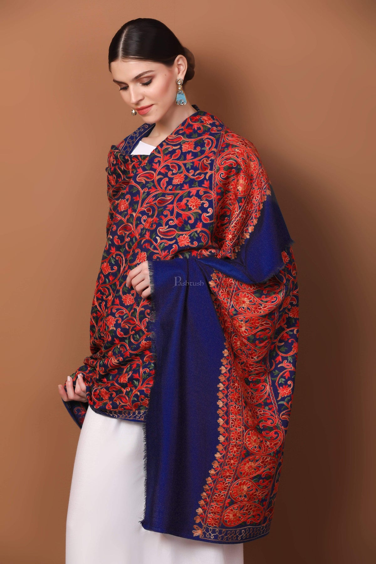 Pashtush Womens Shawl, Aari Embroidery, Navy