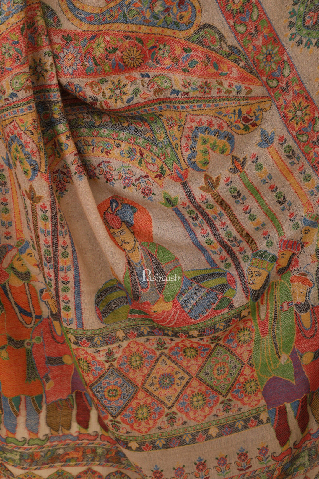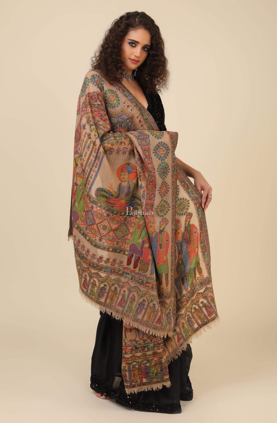 Pashtush Womens 100% Pure Wool Darbar Design Shawl, With Woolmark Certification