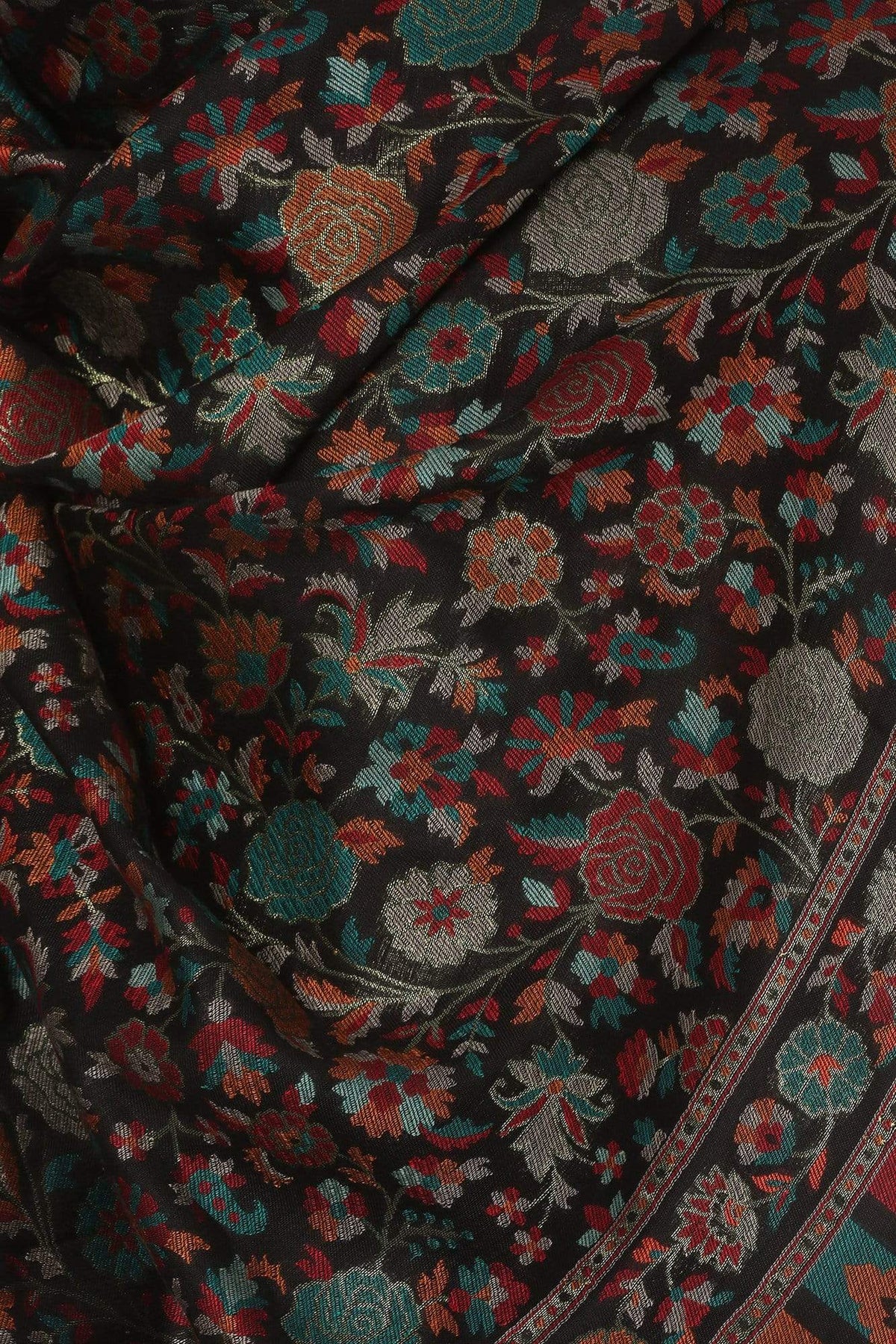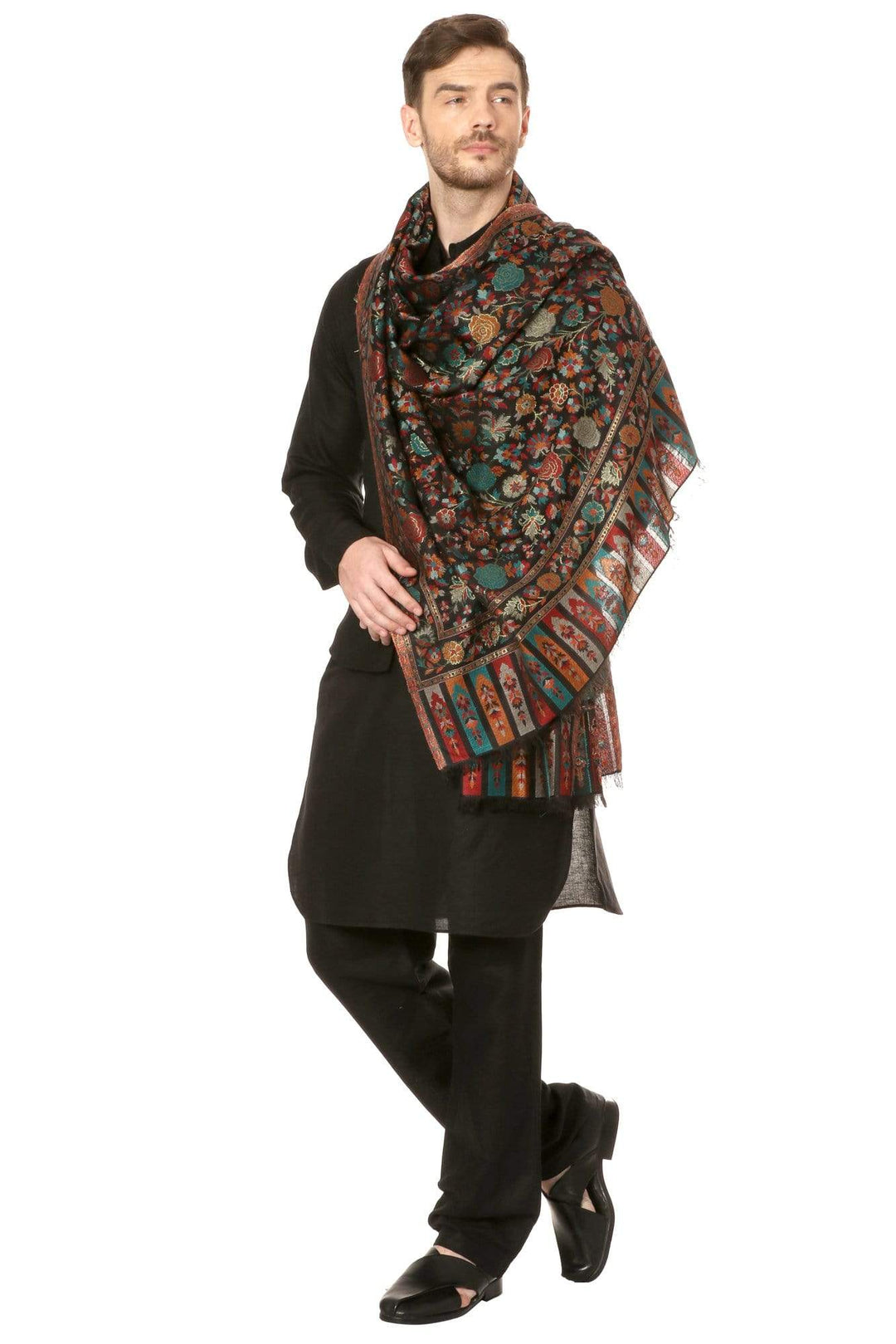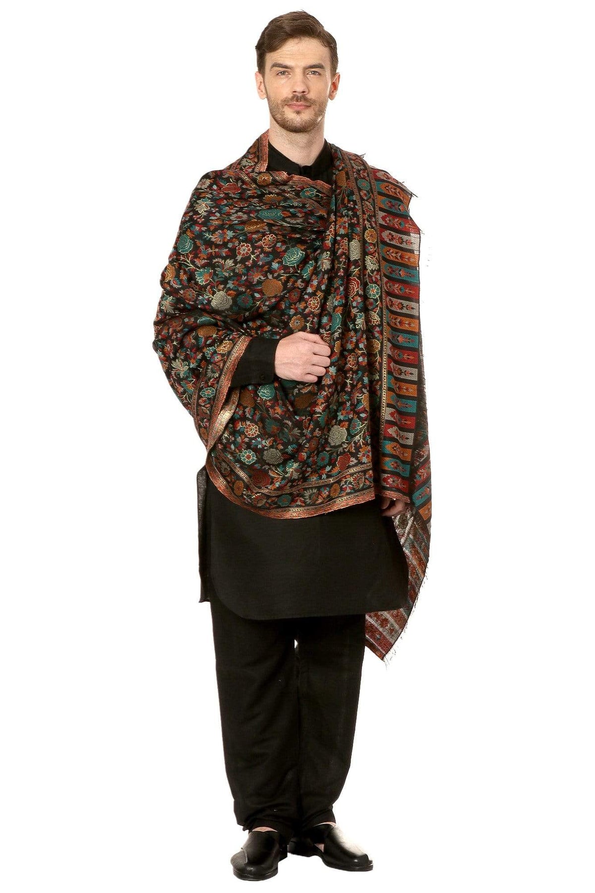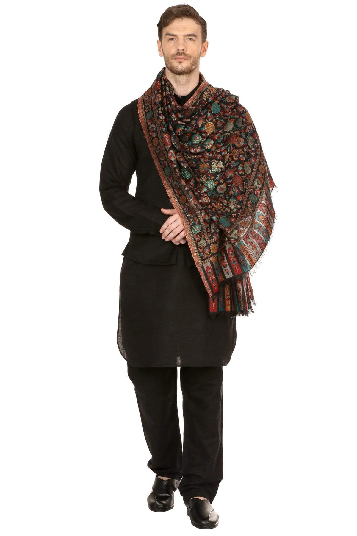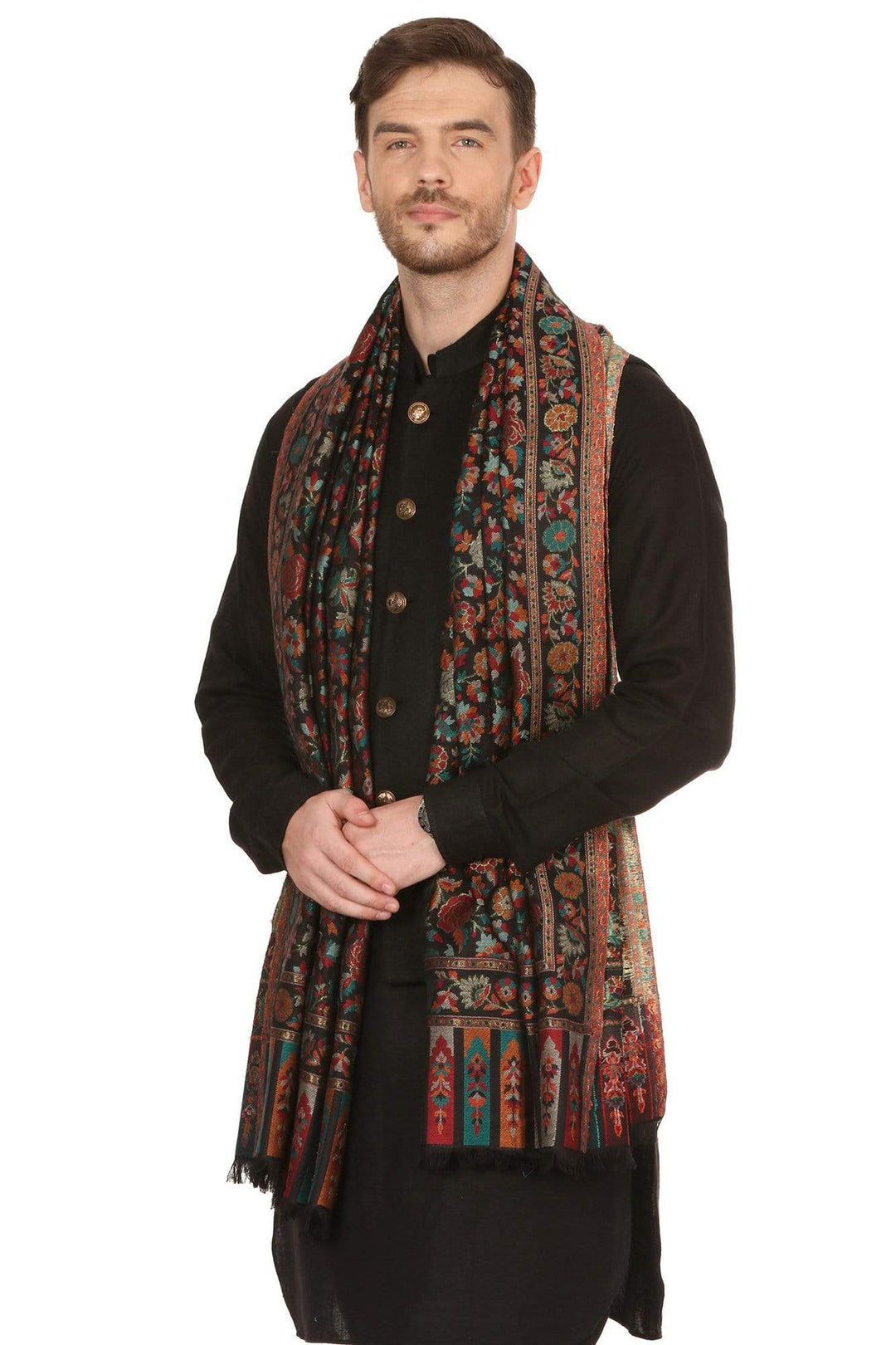 Pashtush Mens Gulaabdar Ethnic Ethinc Jamawar Stole, Woven Design - Black