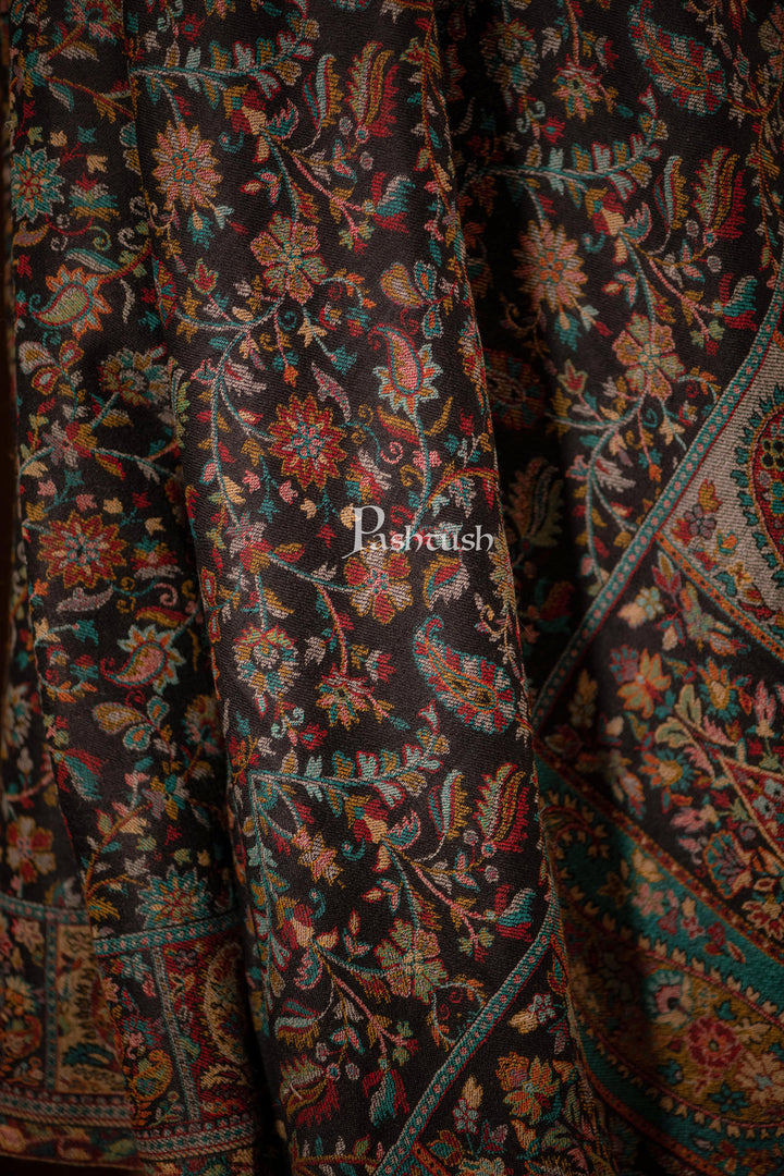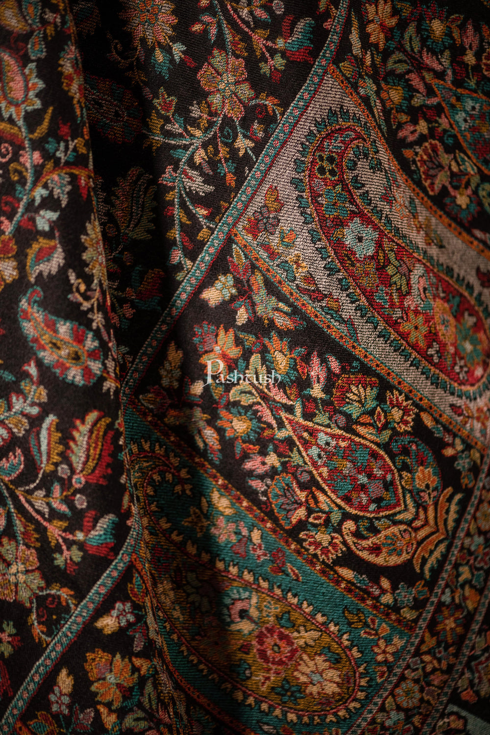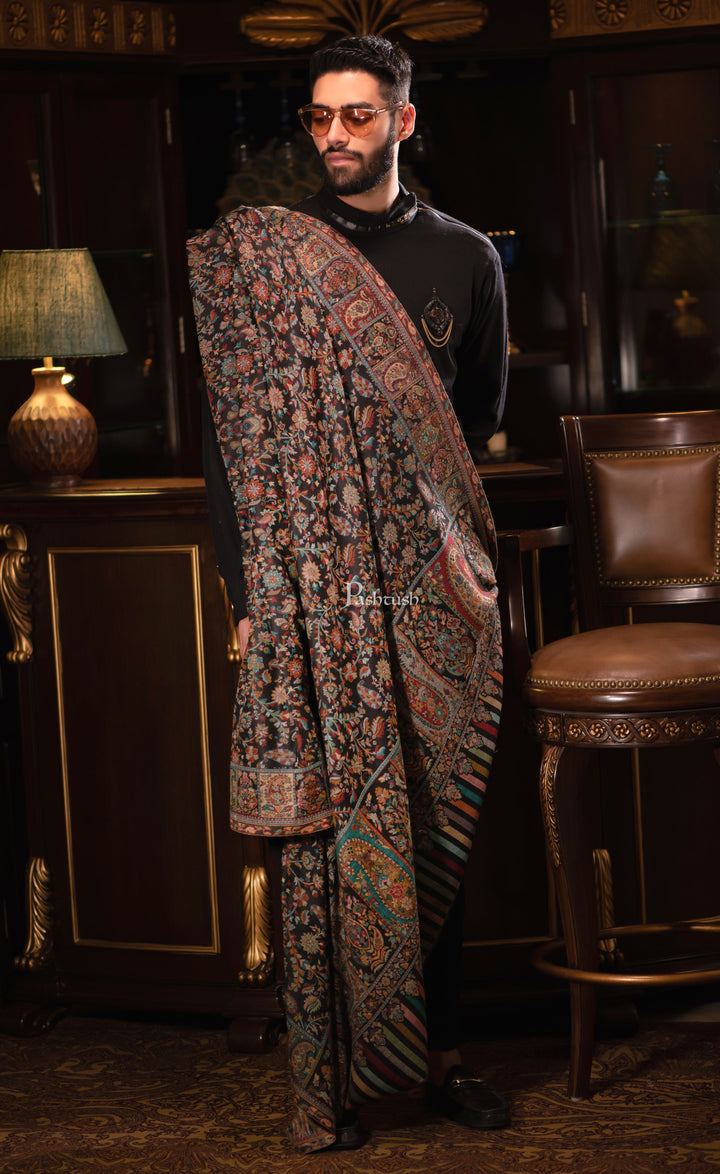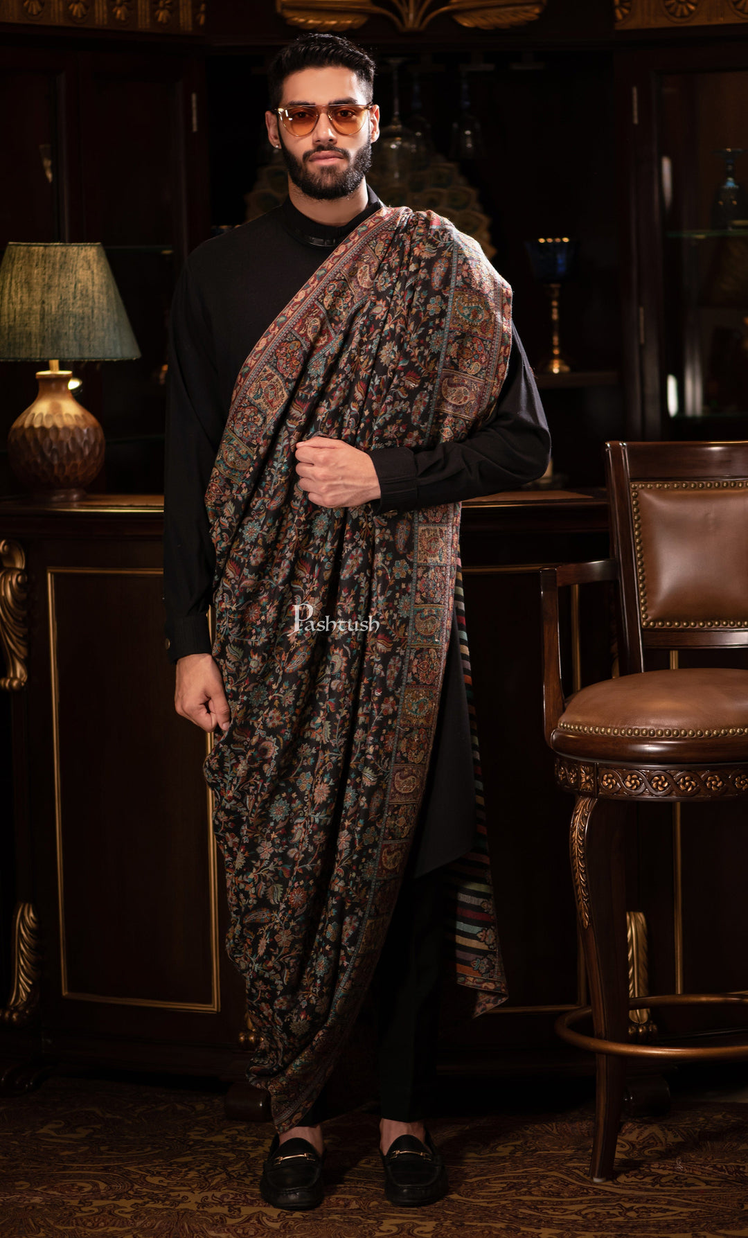 Pashtush men Extra Fine Wool shawl, ethnic design, Mens Lohi, Full size, Black