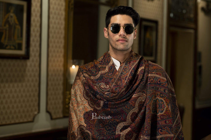 Pashtush Mens Antique Look Heritage Design, Jamawar Stole
