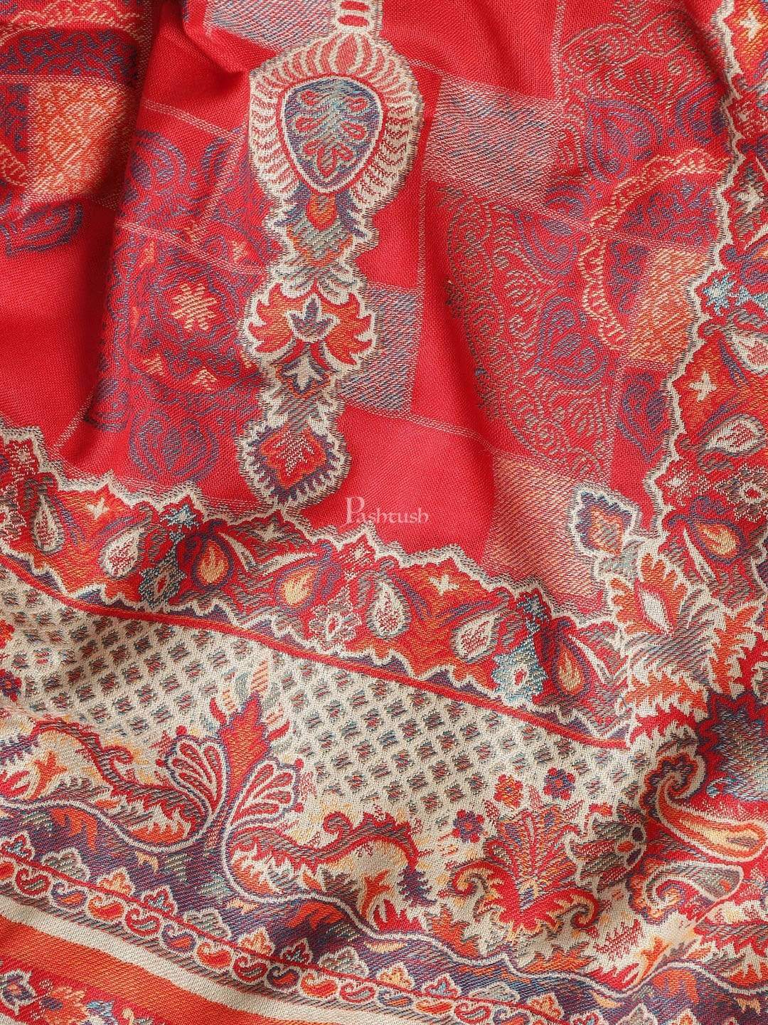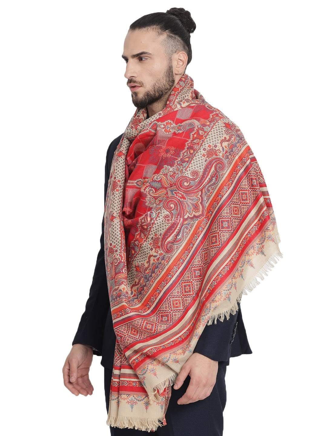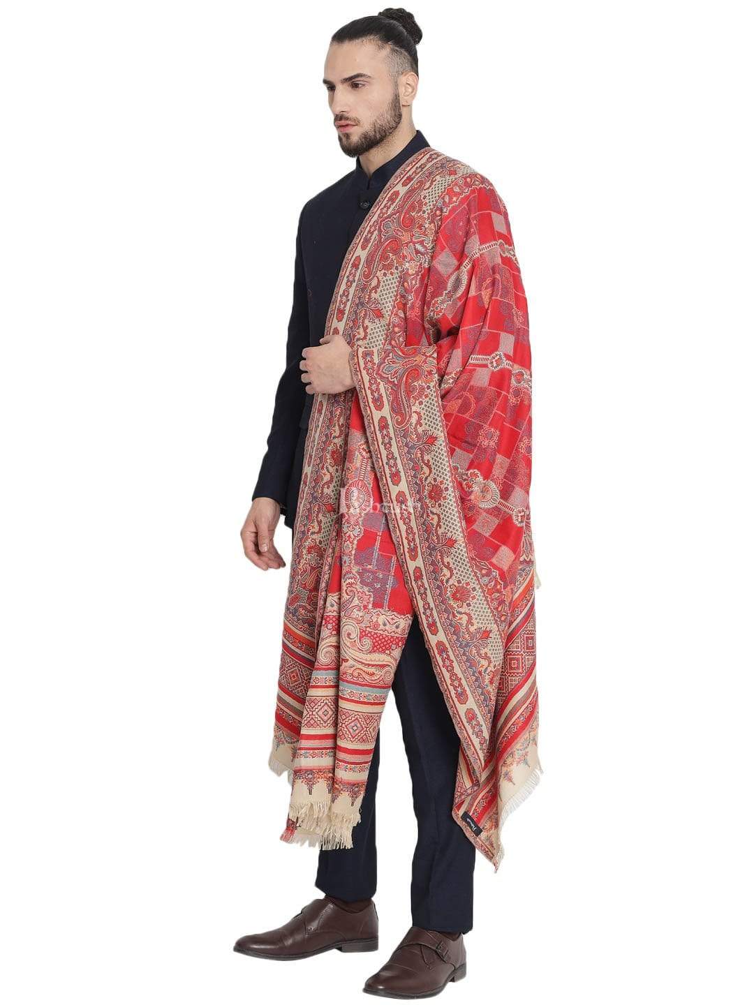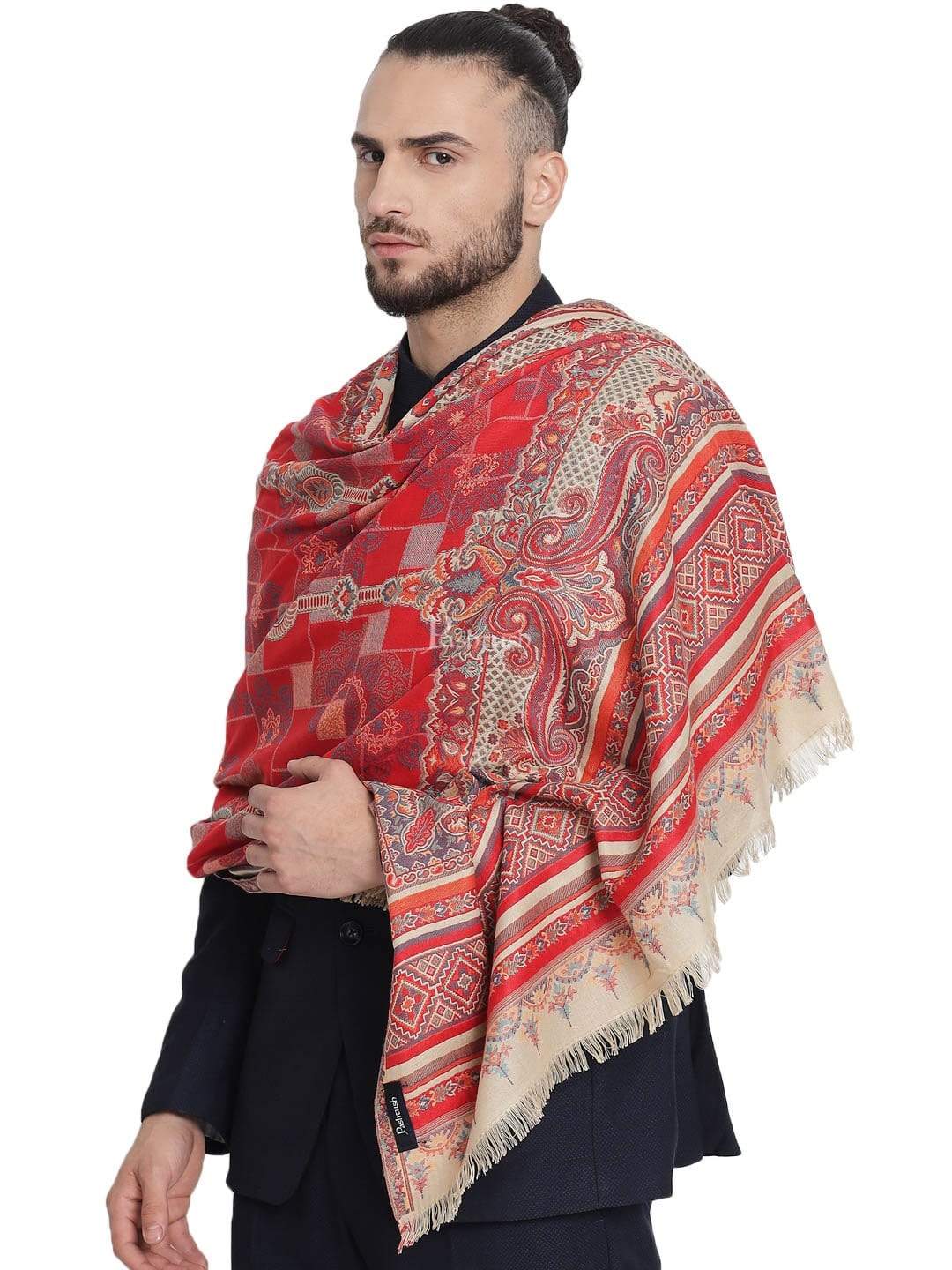 Pashtush Mens Aztec Jamawar Stole, Faux Pashmina - Maroon