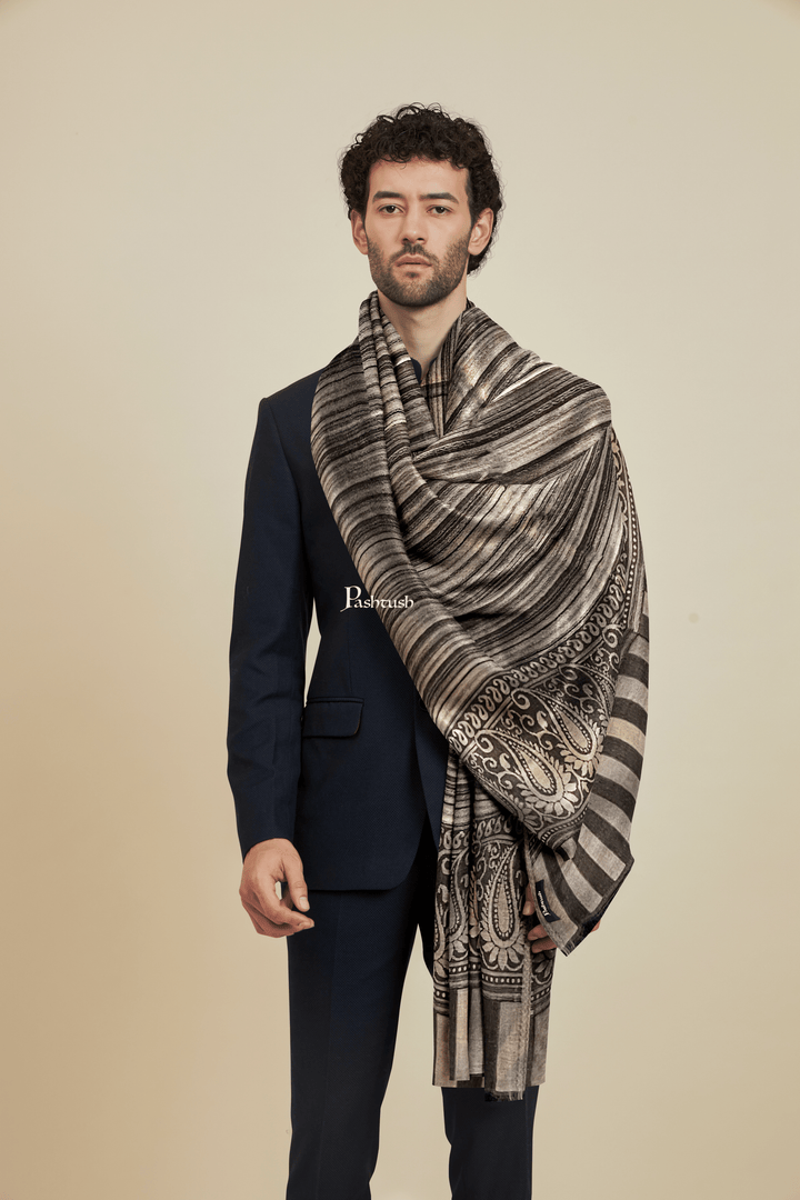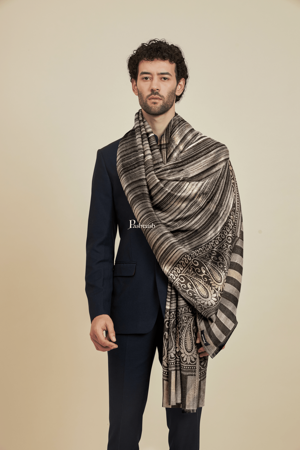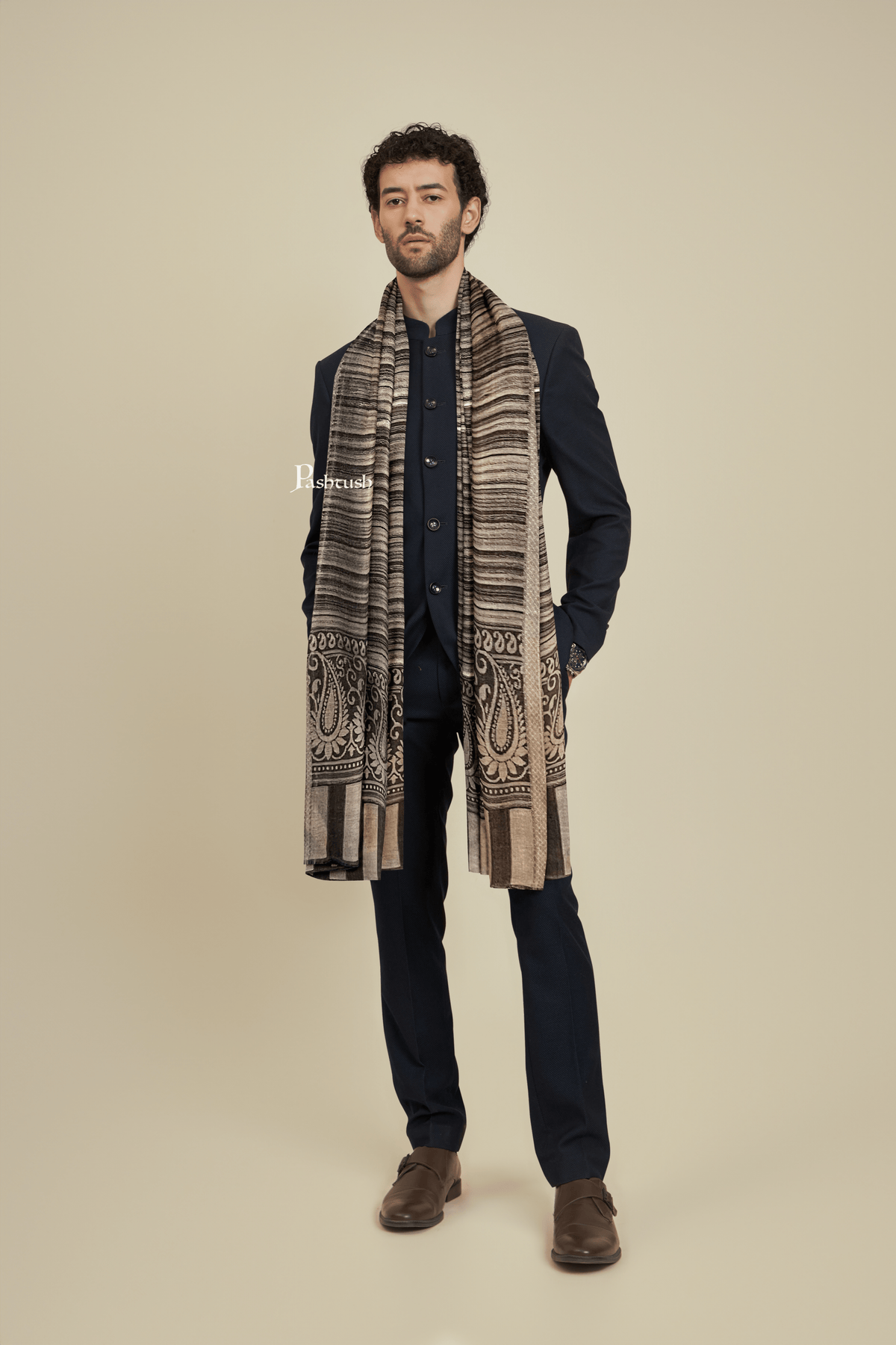 Pashtush Mens Bamboo Scarf, Woven Paisley Soft And Natural, Black