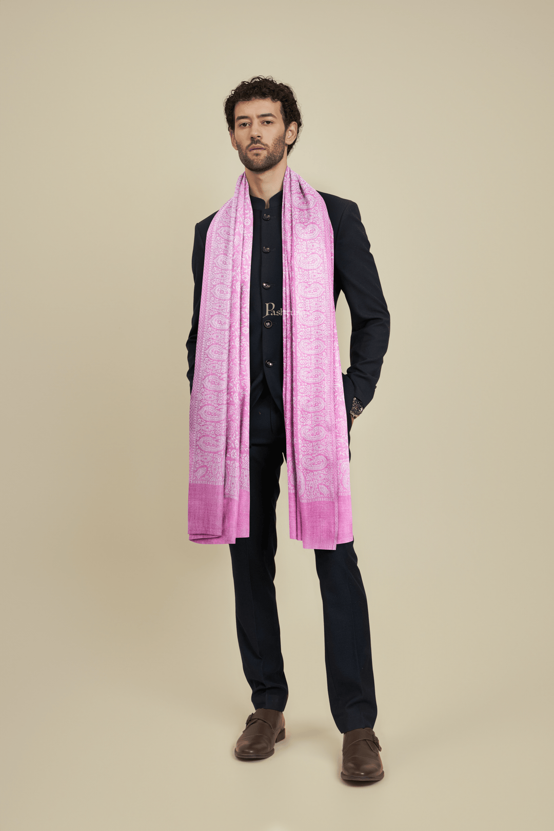 Pashtush Mens Bamboo Stole, Pasiley Weave Design, Dark Pink