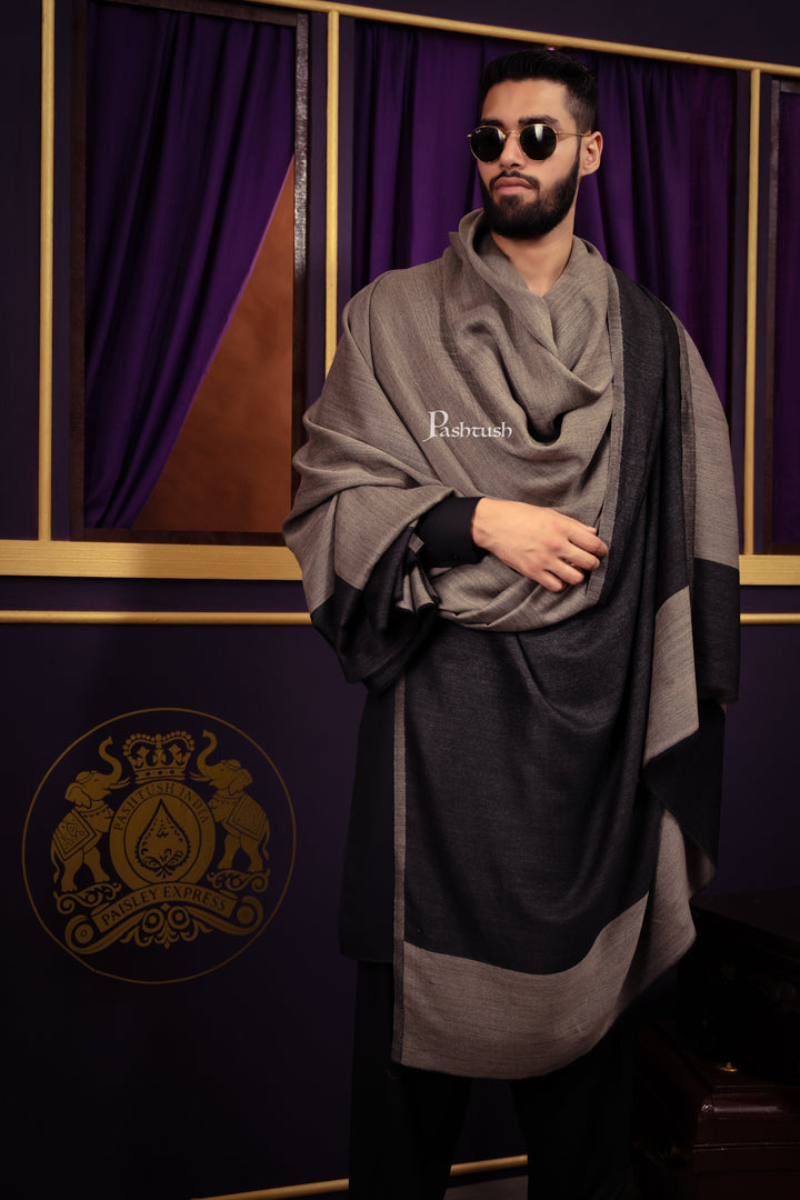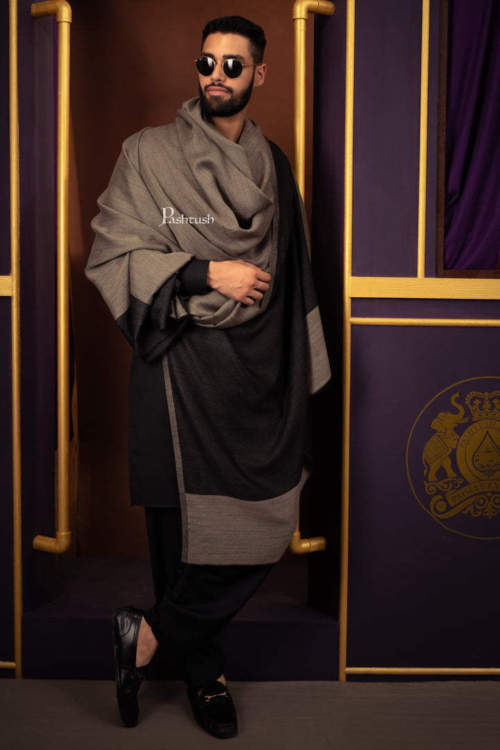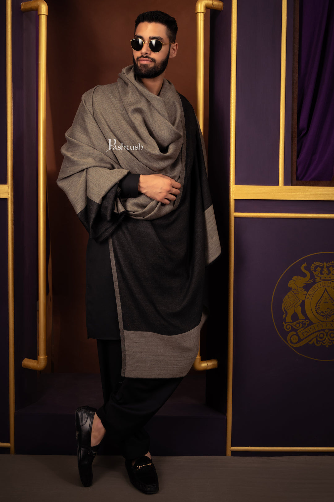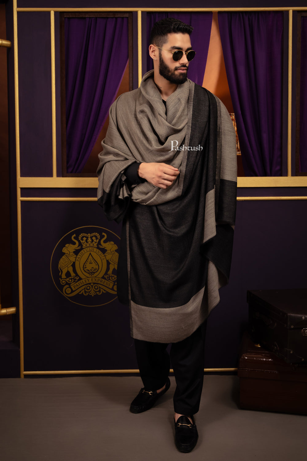 Pashtush Mens Cashmere Shawl, Reversible Design, Black And Grey