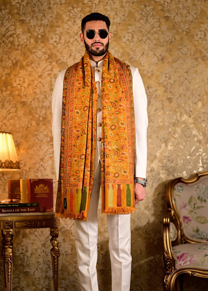 Pashtush Mens Faux Pashmina Ethnic Weave Stole, Mustard
