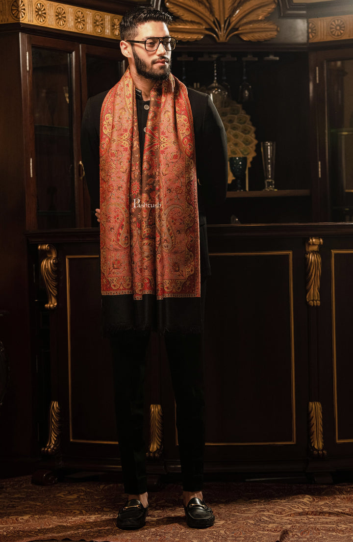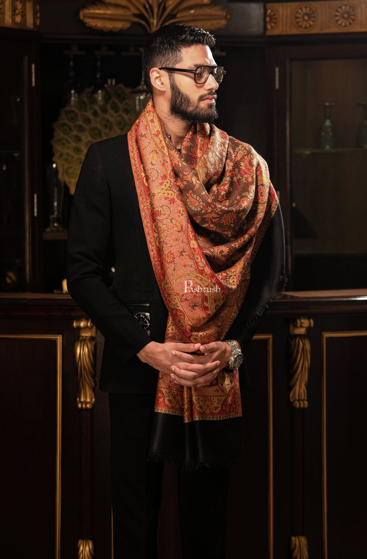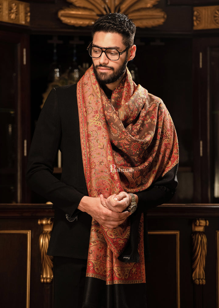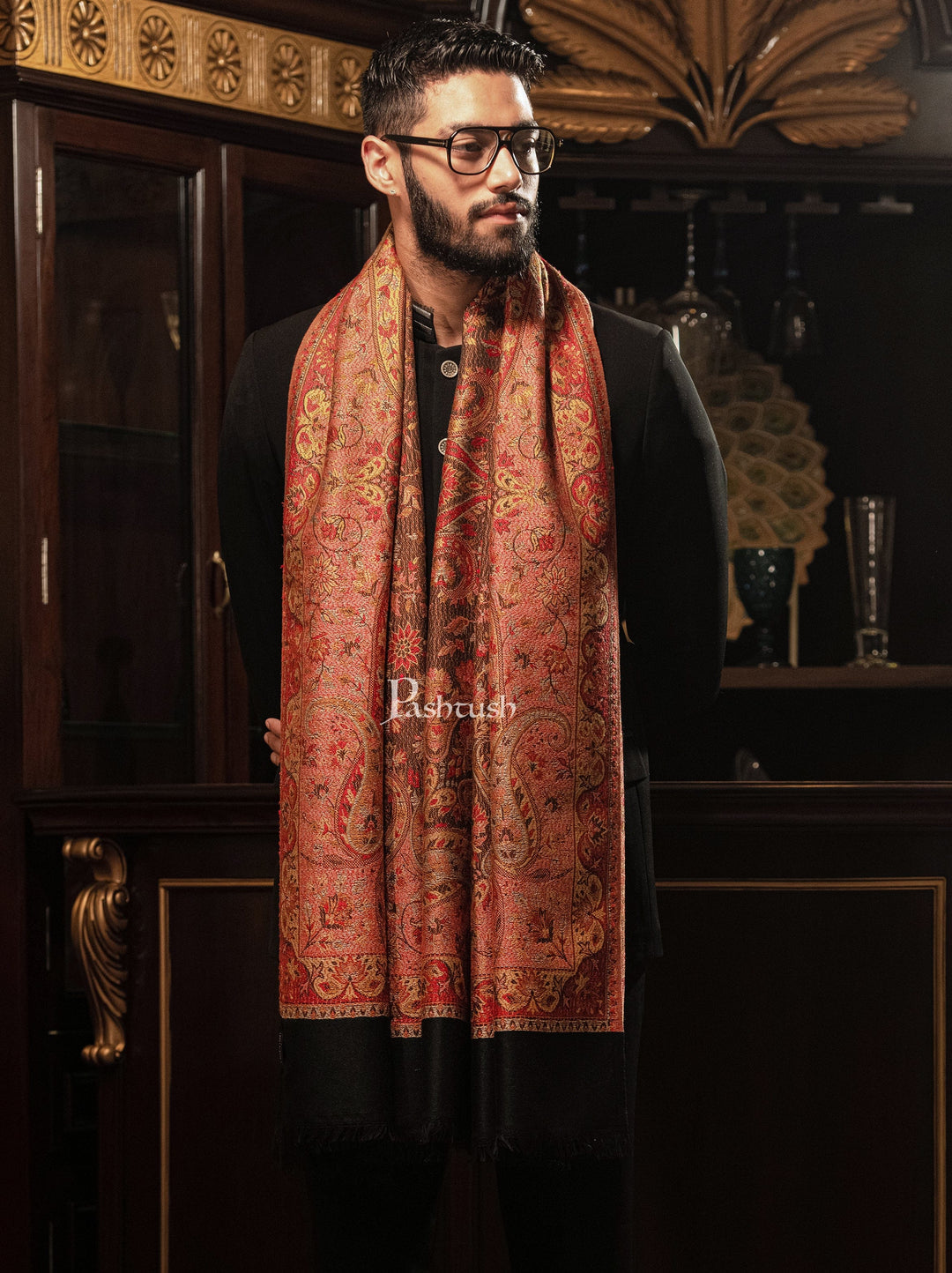 Pashtush mens faux pashmina stole, jacquard design, Black