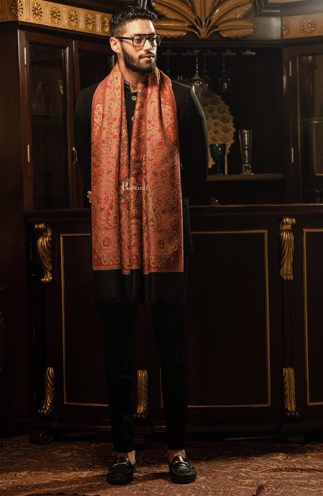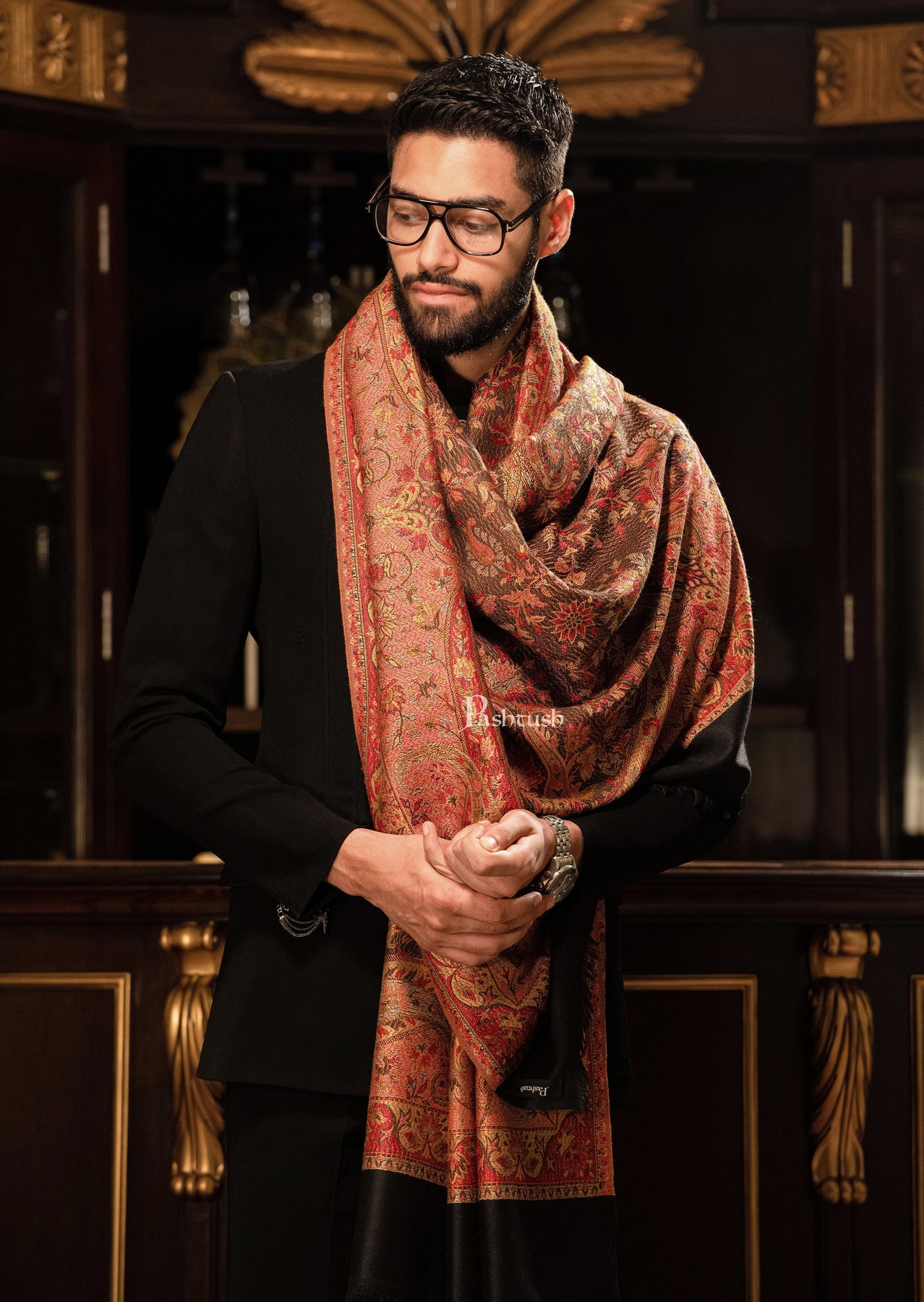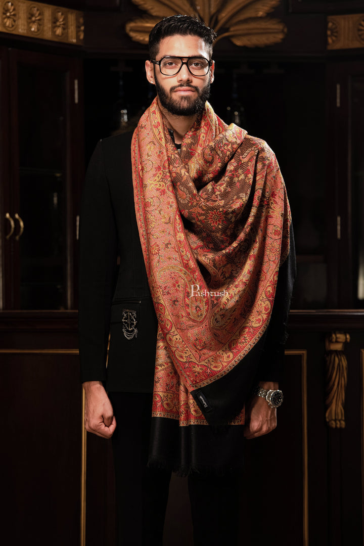 Pashtush mens faux pashmina stole, jacquard design, Black