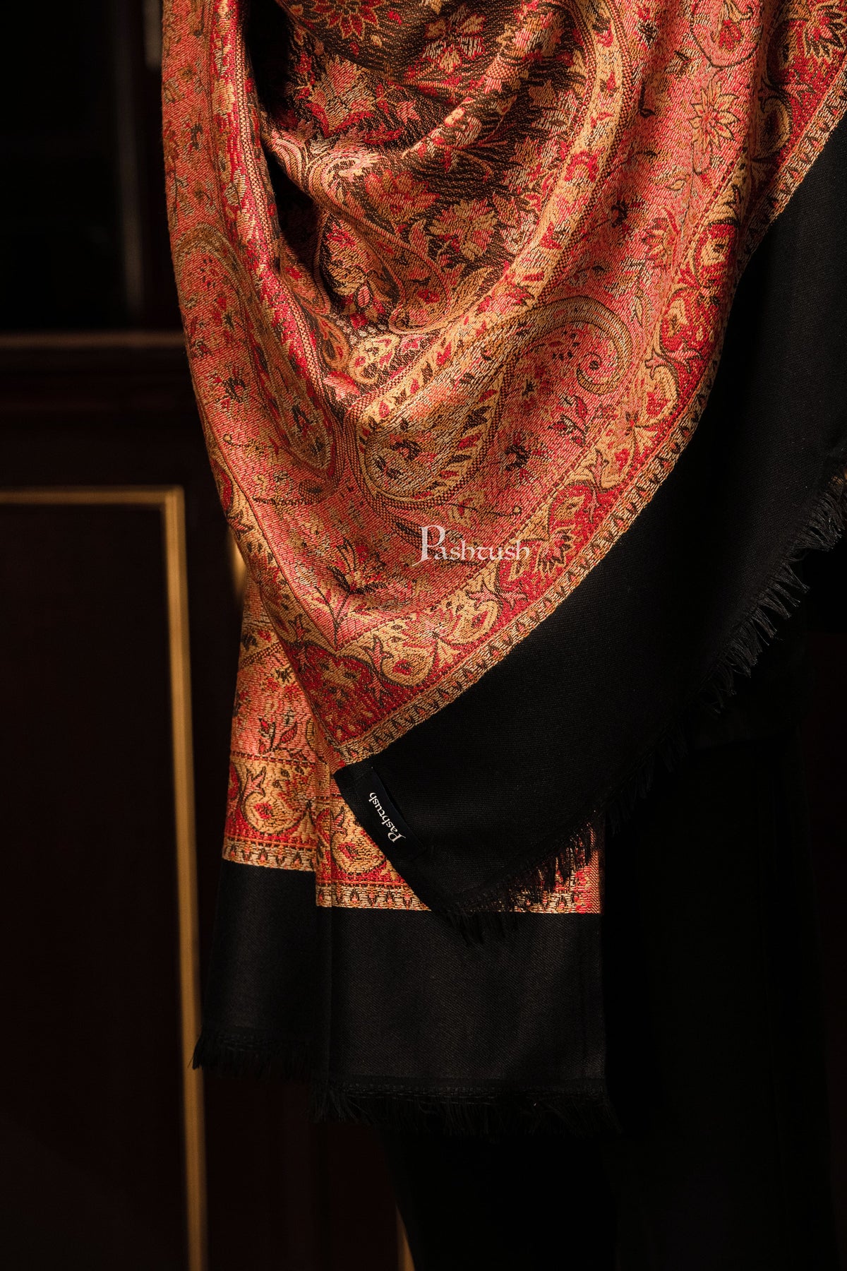 Pashtush India Mens Shawls Gents Shawl Pashtush mens faux pashmina stole, jacquard design, Black