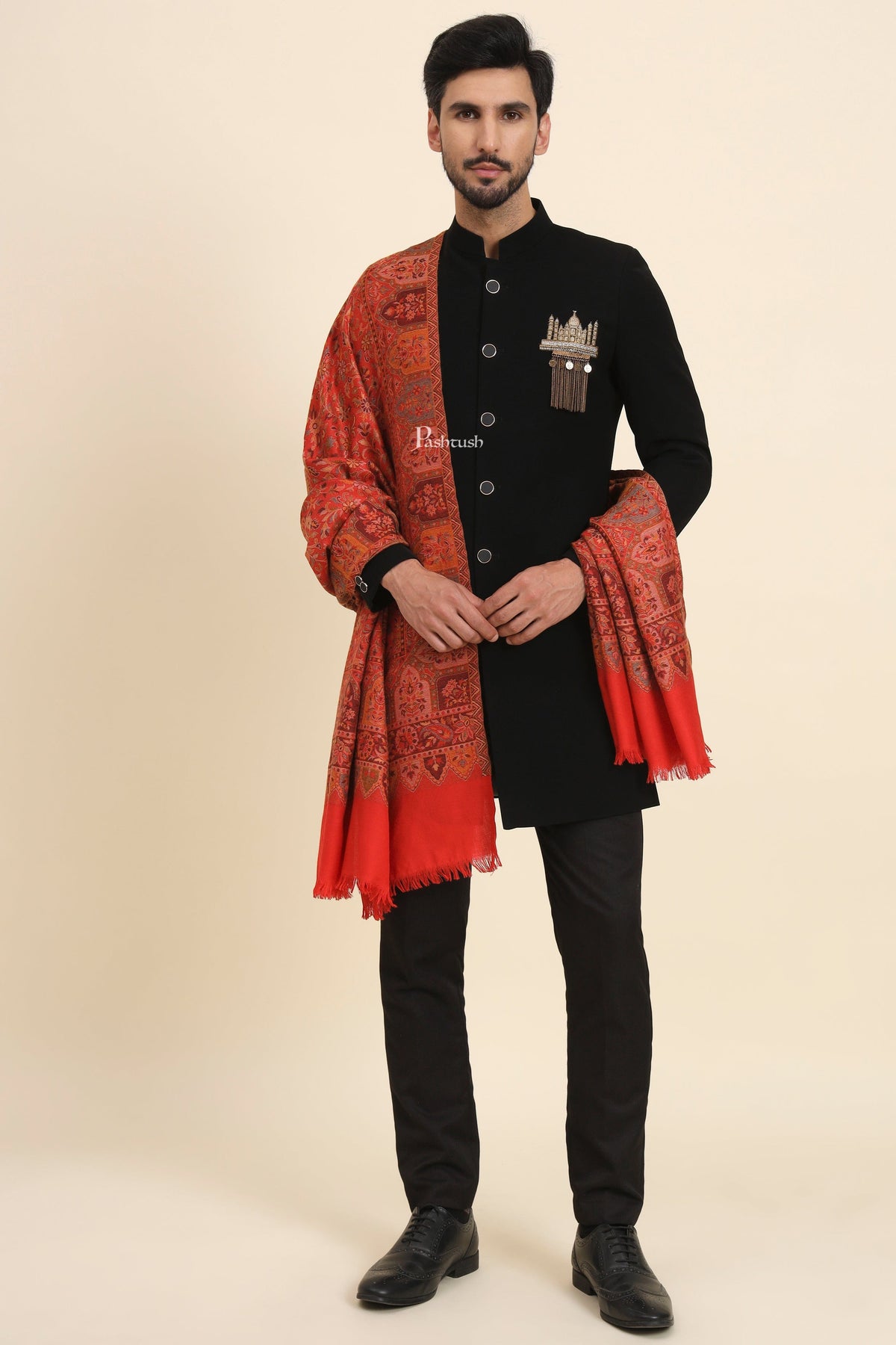Pashtush Mens Faux Pashmina Stole, Jamawar Design, Red