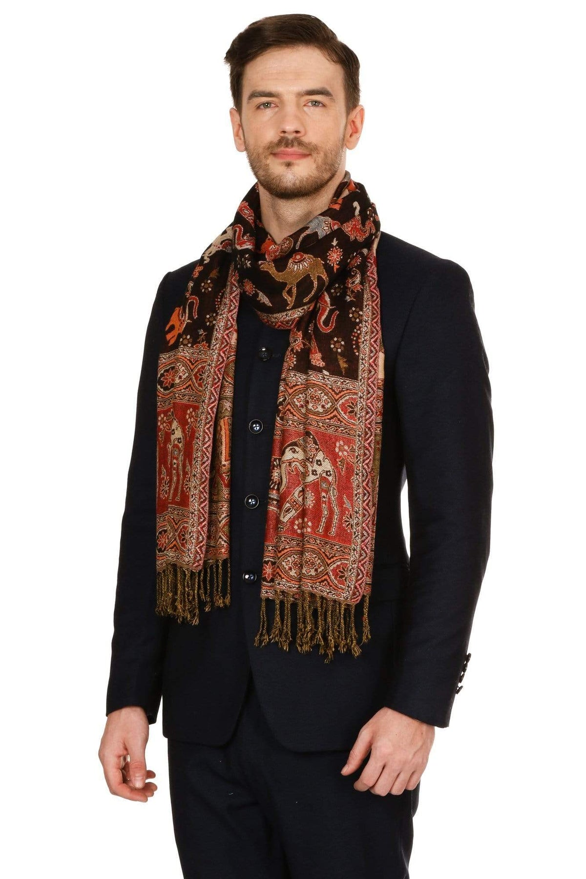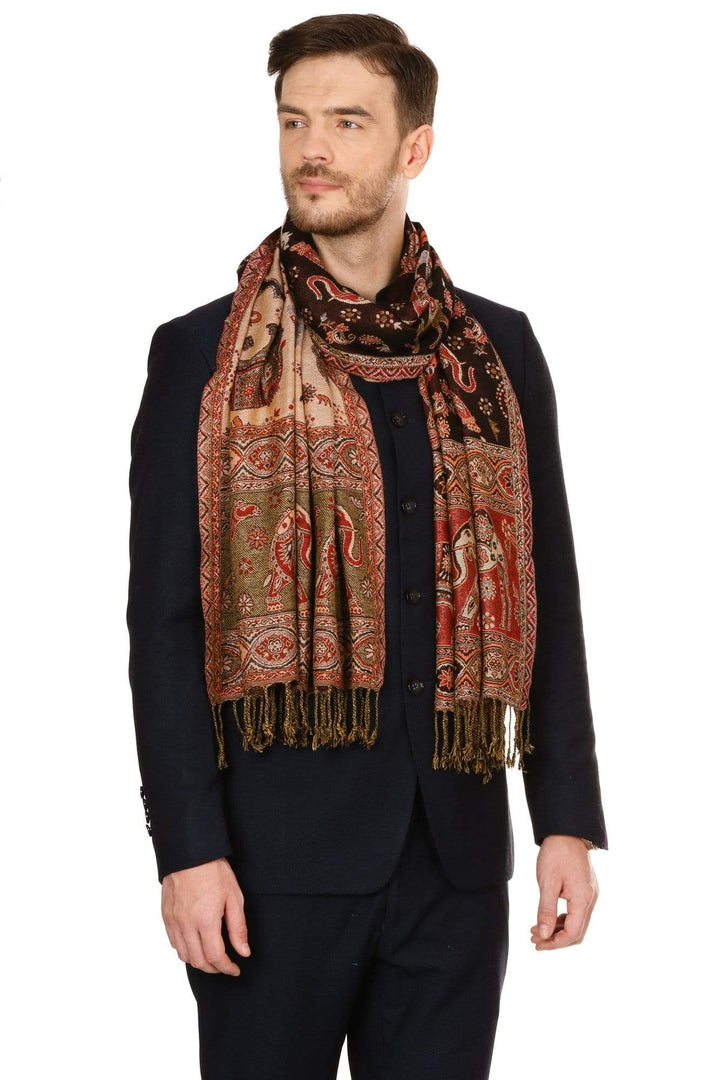 Pashtush India Stole Pashtush Mens fine Soft Ethnic Stole - Brown