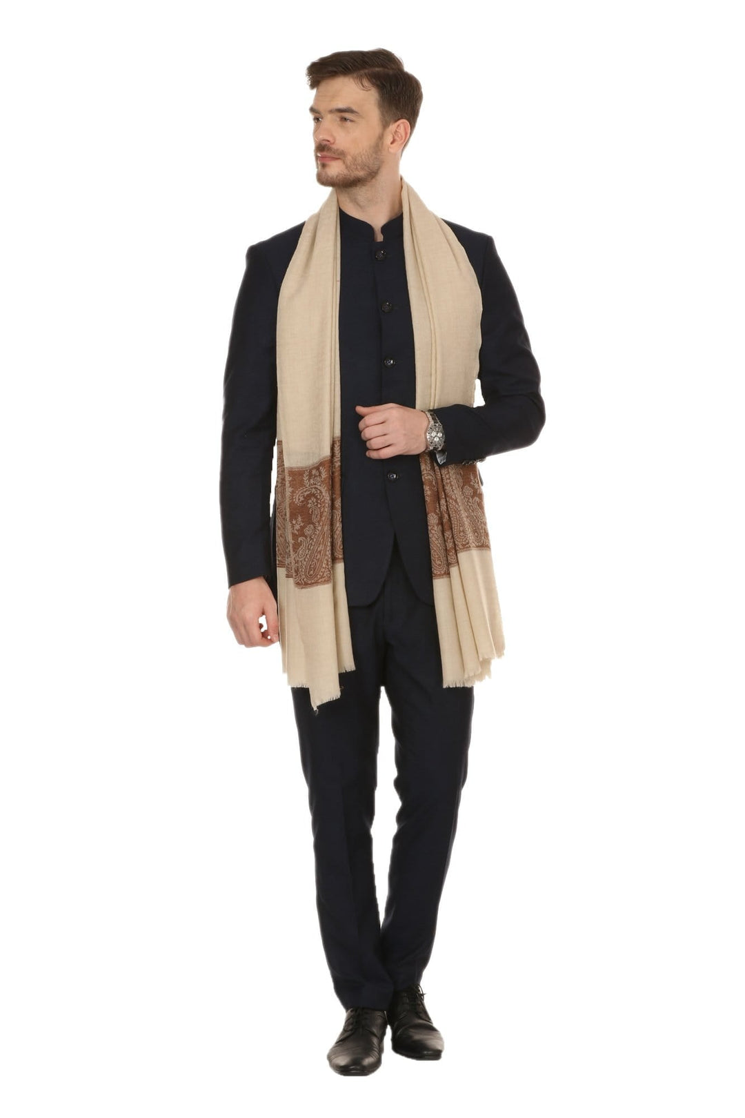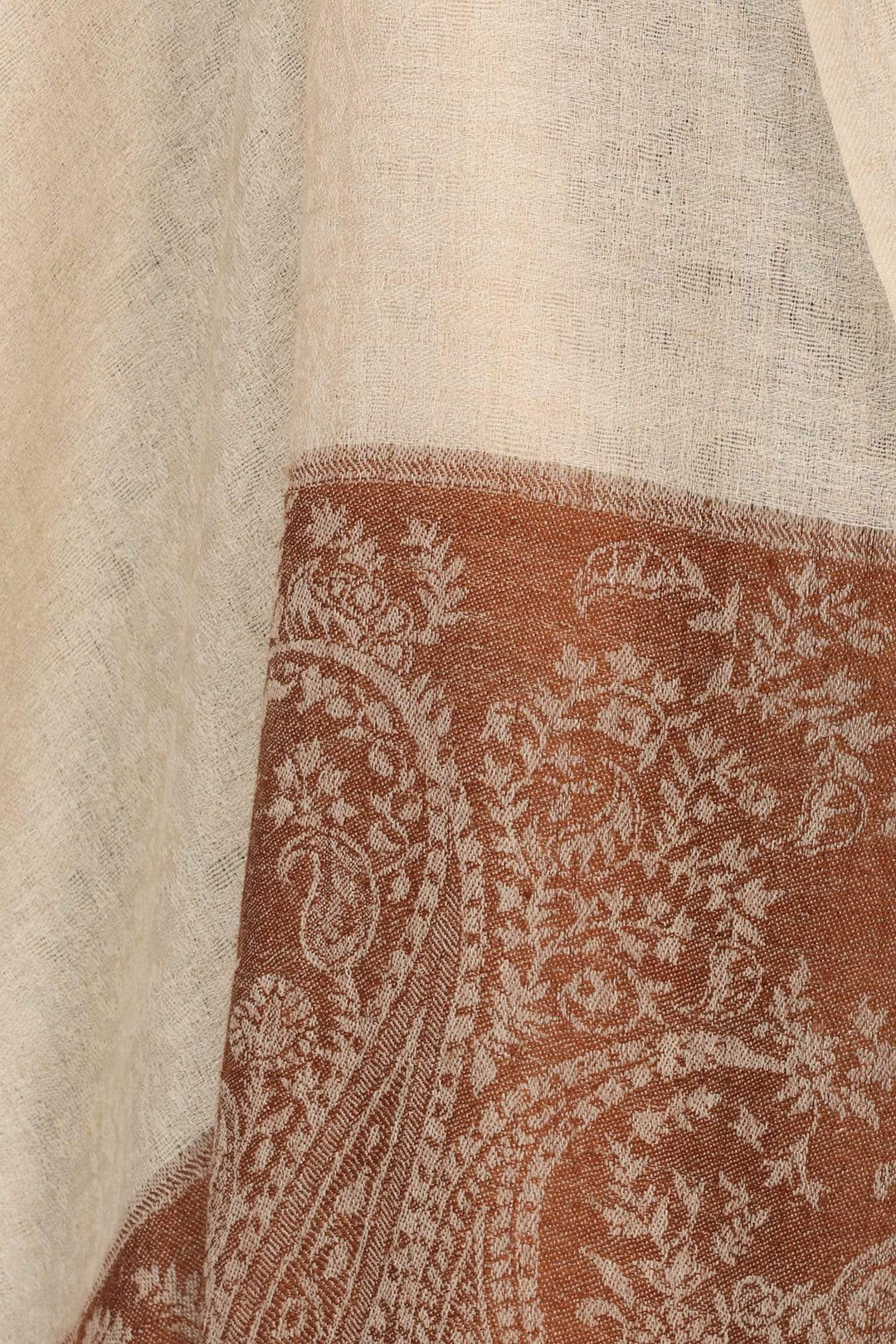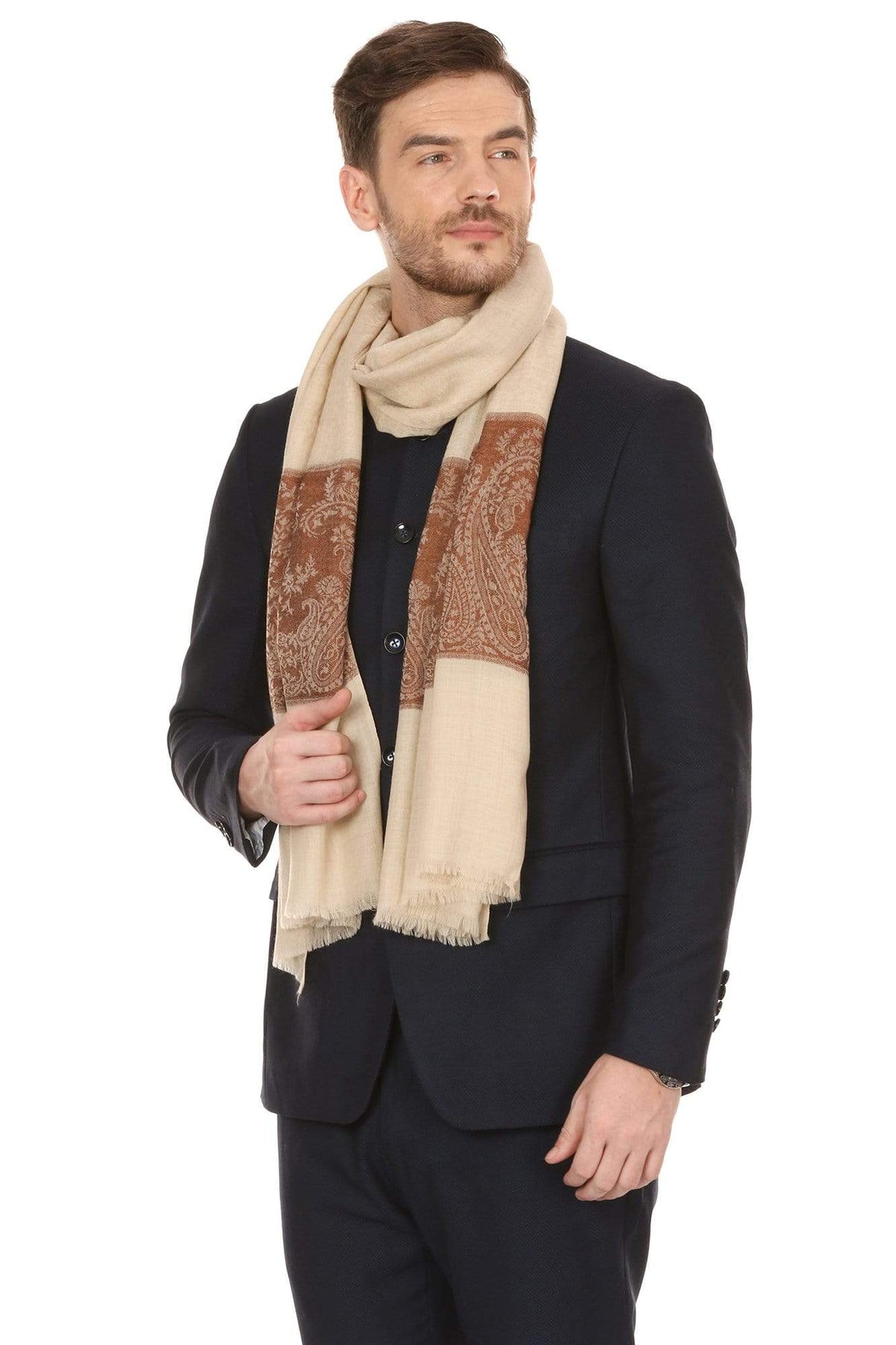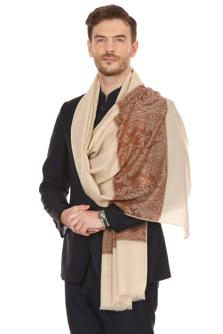 Pashtush Mens Extra Fine Wool Jacquard Stole, Beige