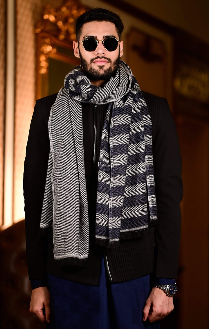 Pashtush Mens Herringbone Pattern Weave Warm Woollen Scarf, Grey