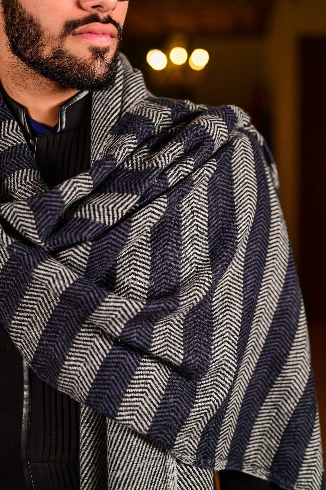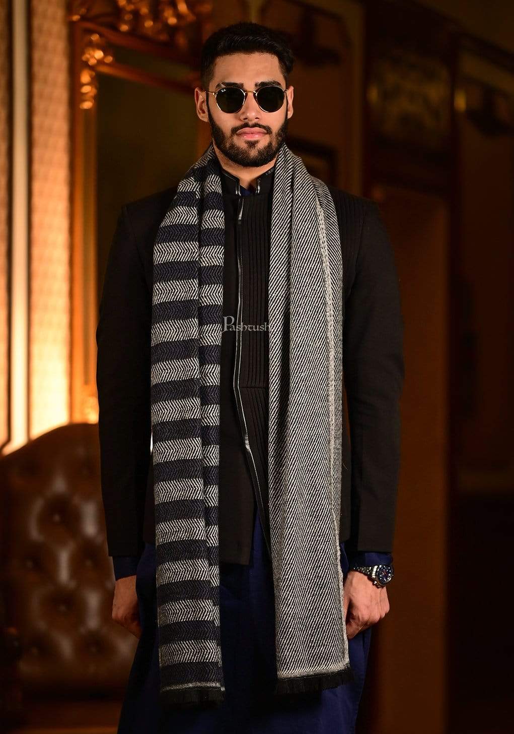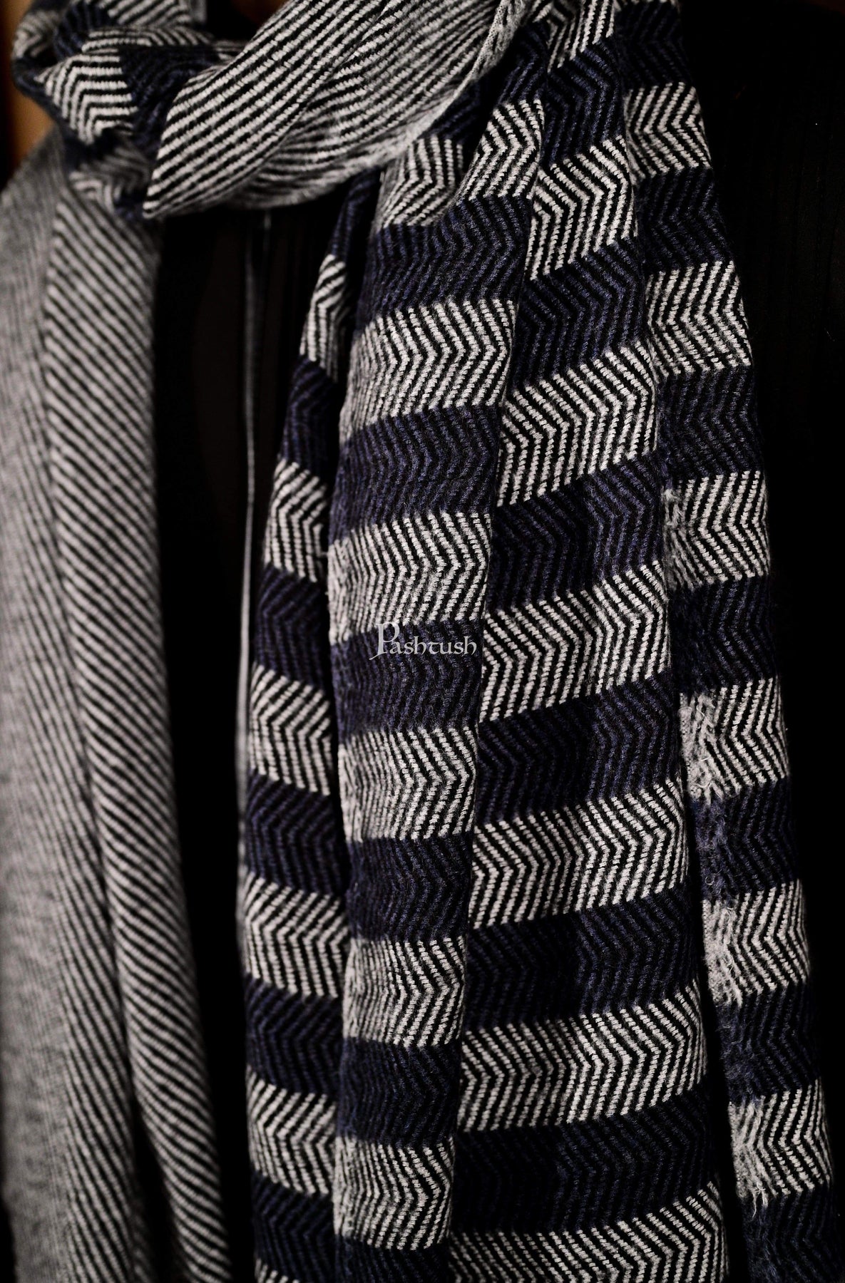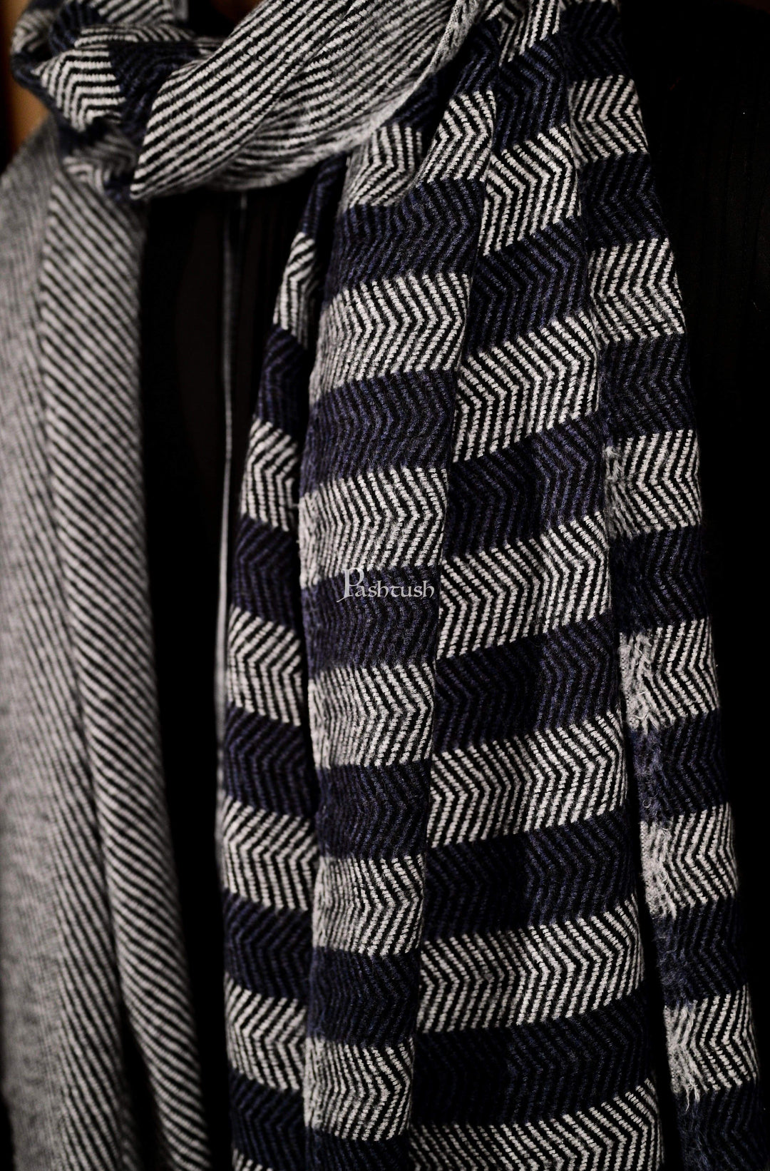 Pashtush India 70x200 Pashtush Mens Herringbone Pattern Weave Warm Woollen Scarf, Grey