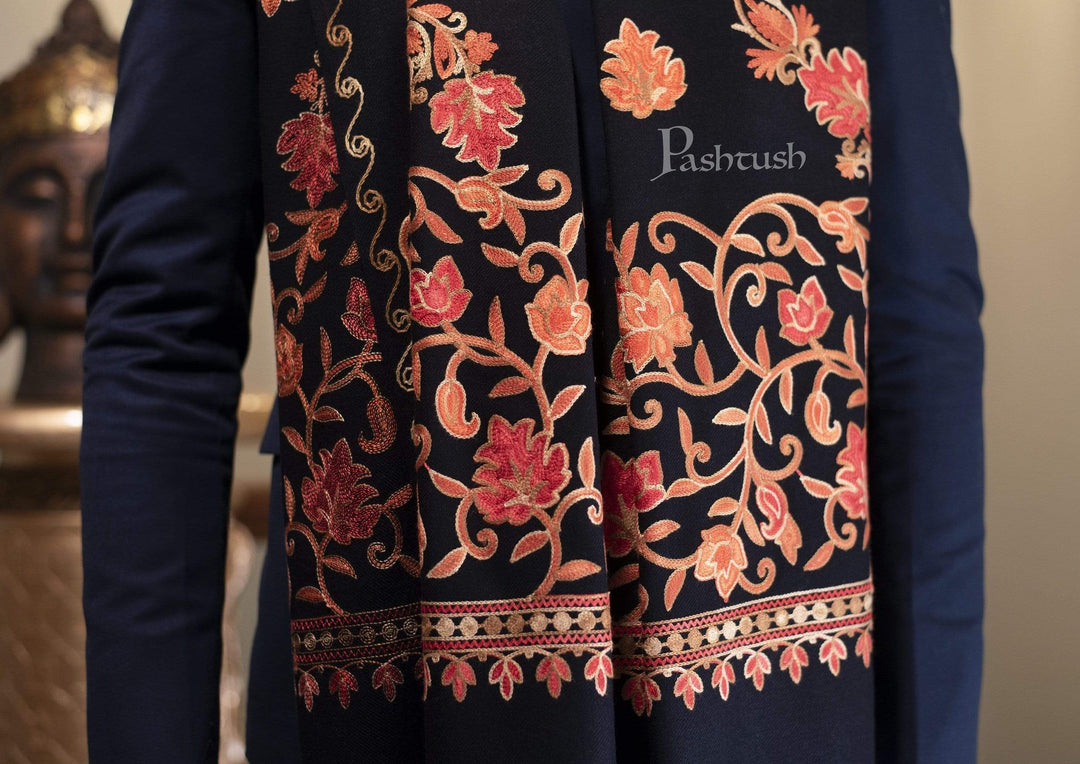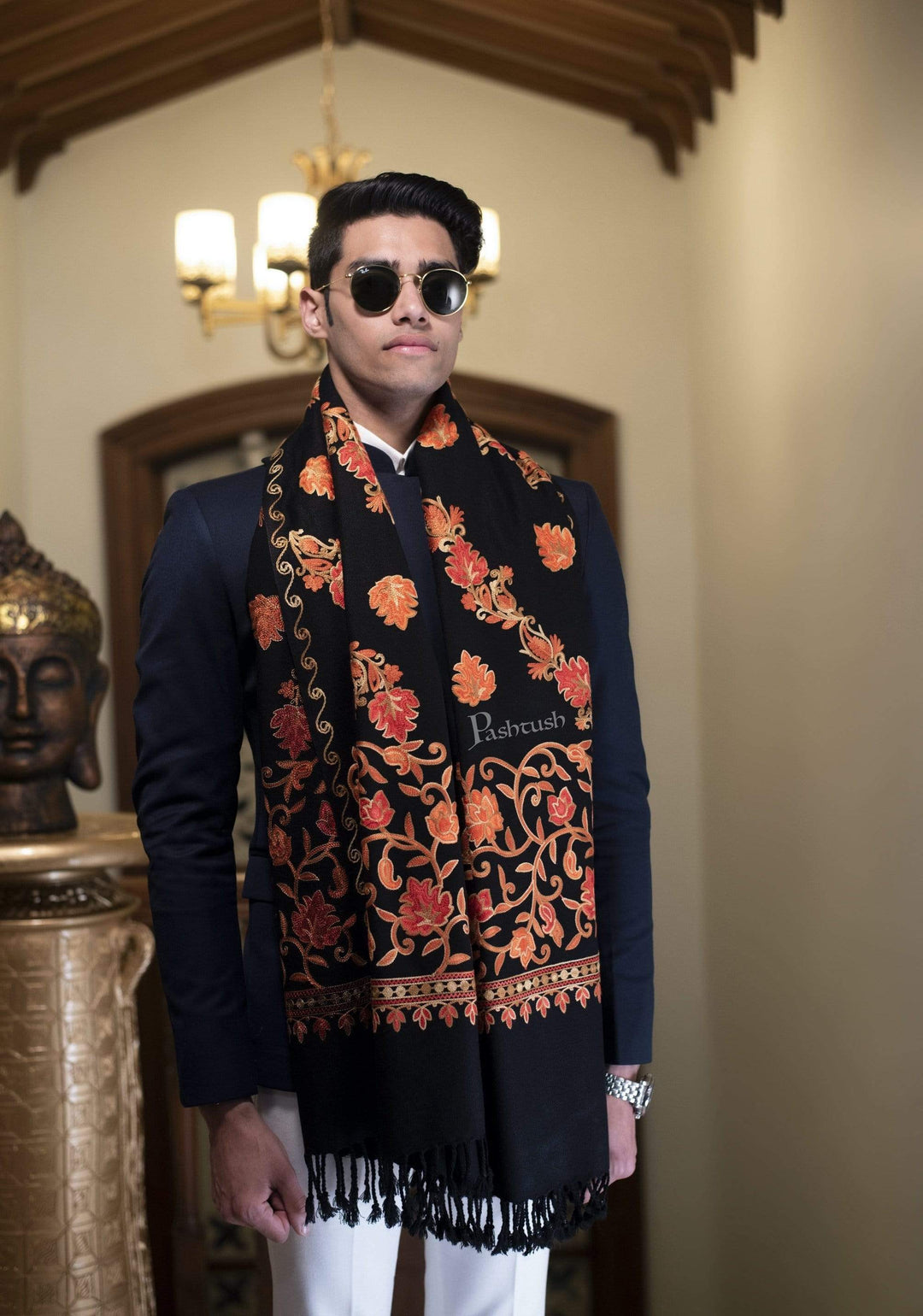 Pashtush Mens Aari Embroidery Stole, Thick And Warm, Black