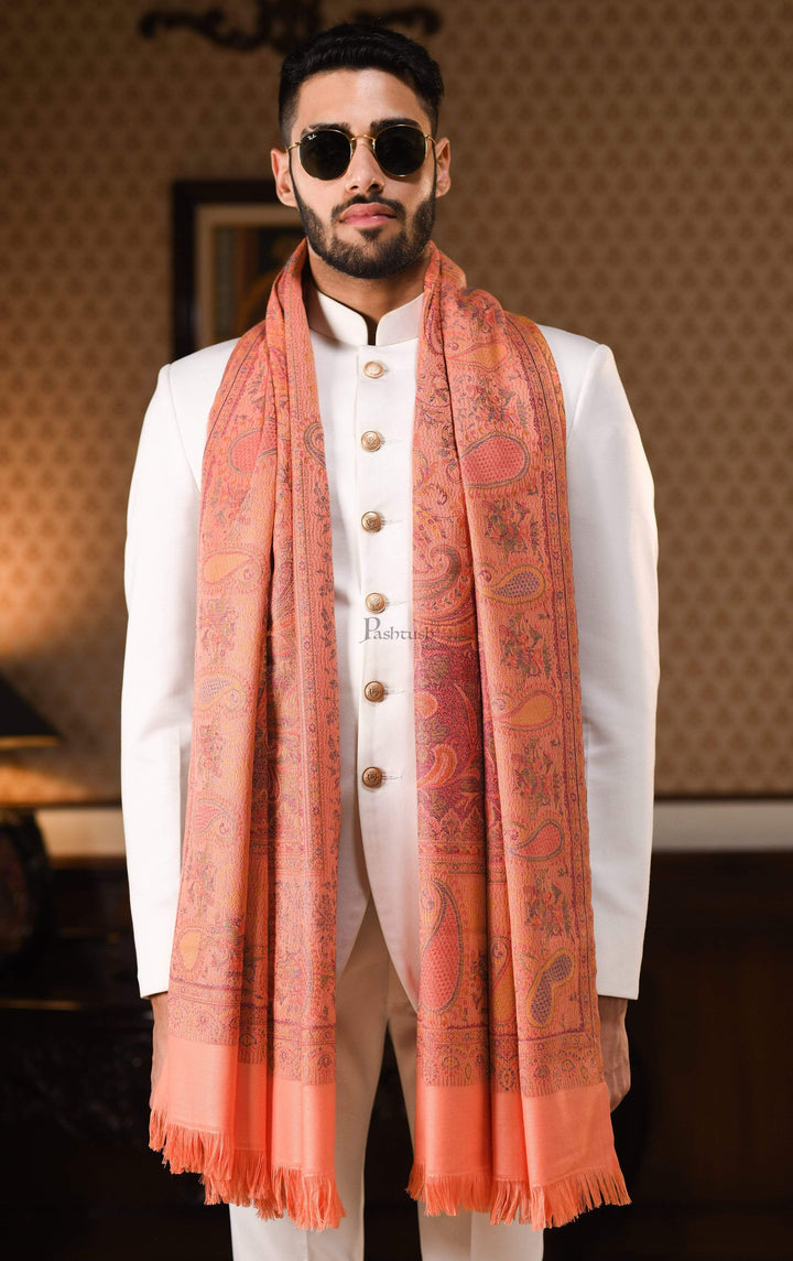Pashtush Mens Design Jamawar Stole, Soft And Warm, Peach