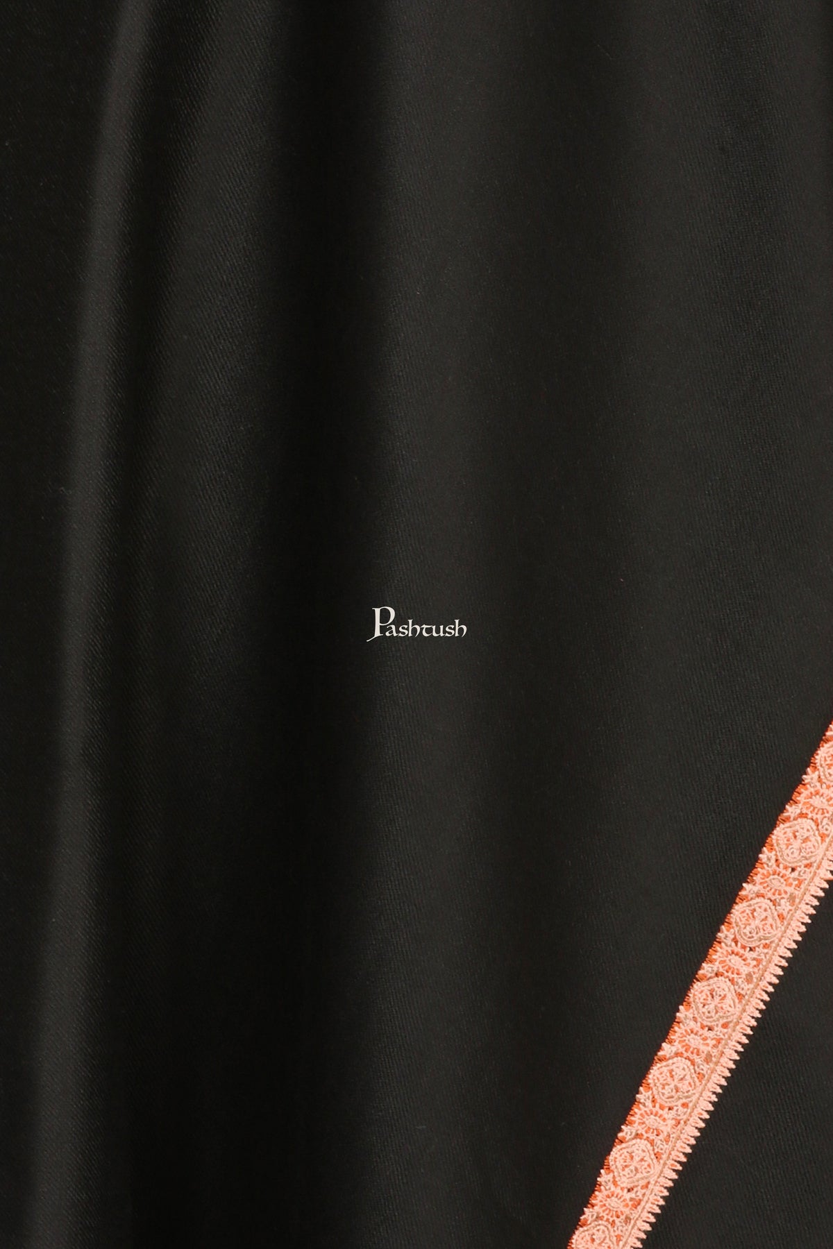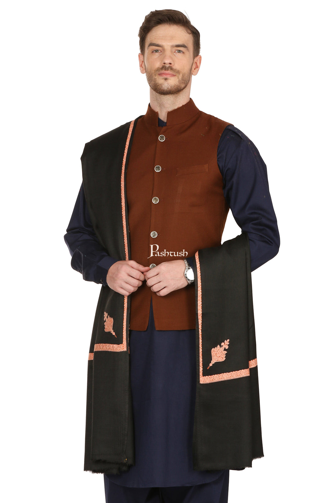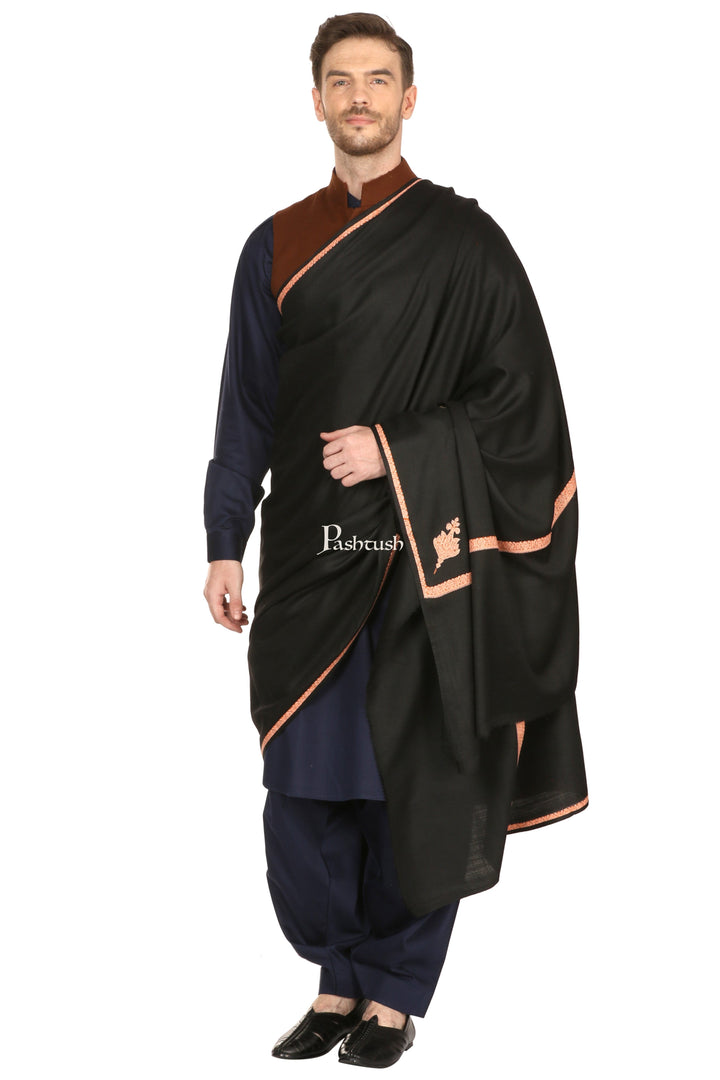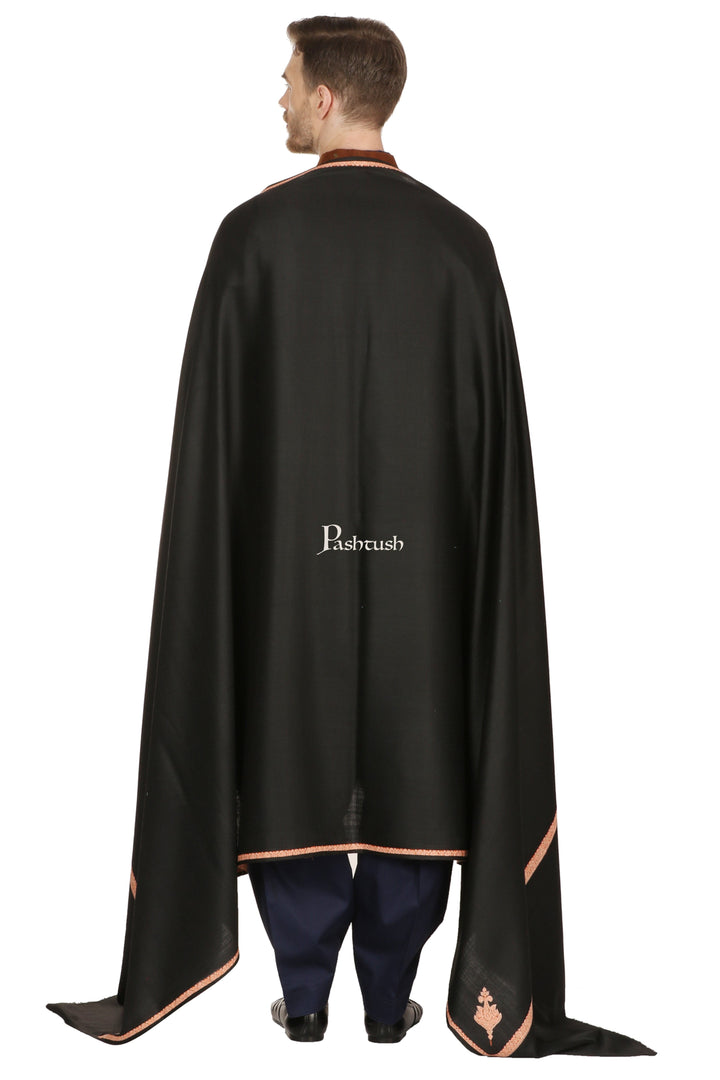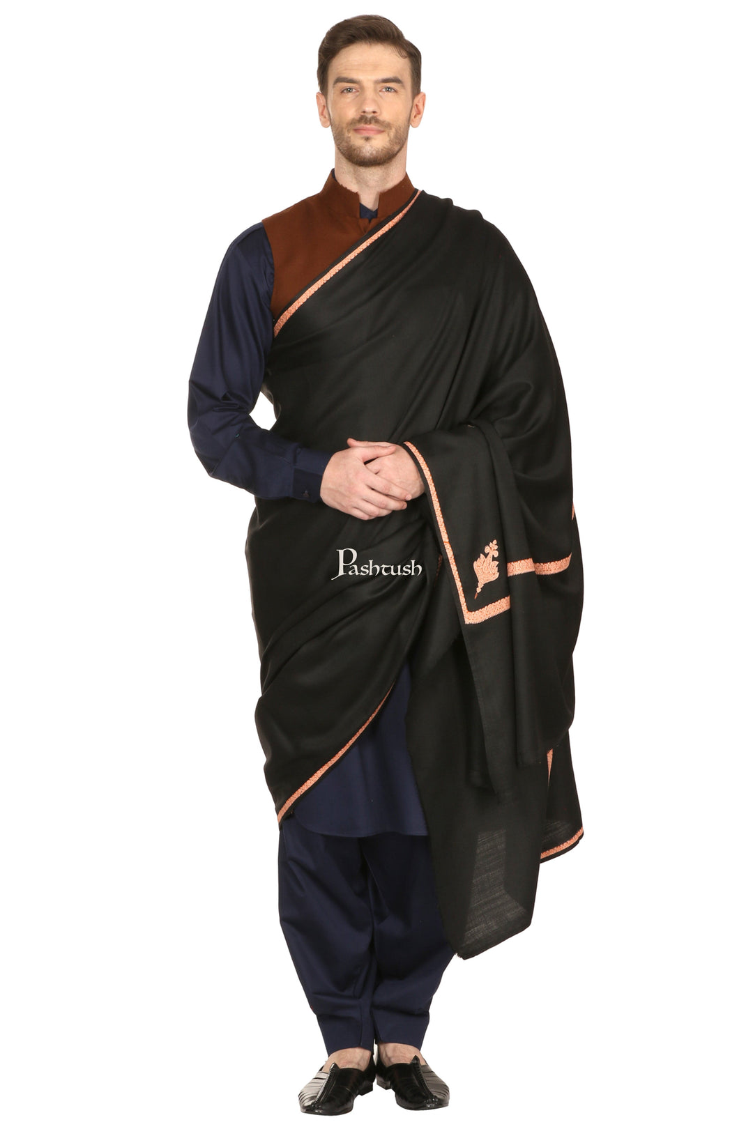 Pashtush India Mens Shawls Gents Shawl Pashtush Mens Embroidery Black Shawl, Kingri Design - Rich Black