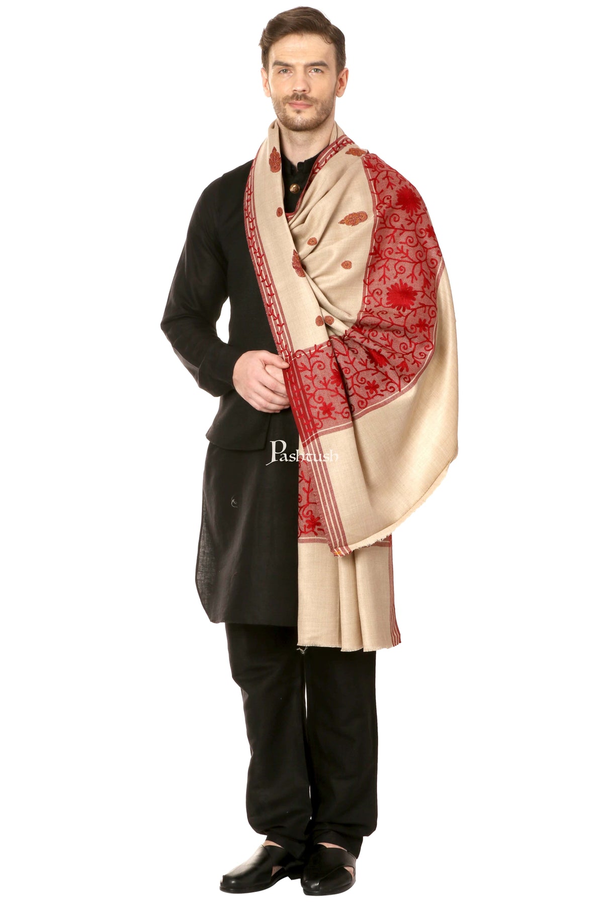 Pashtush Mens Hand Embroidery Shawl, Thick And Warm