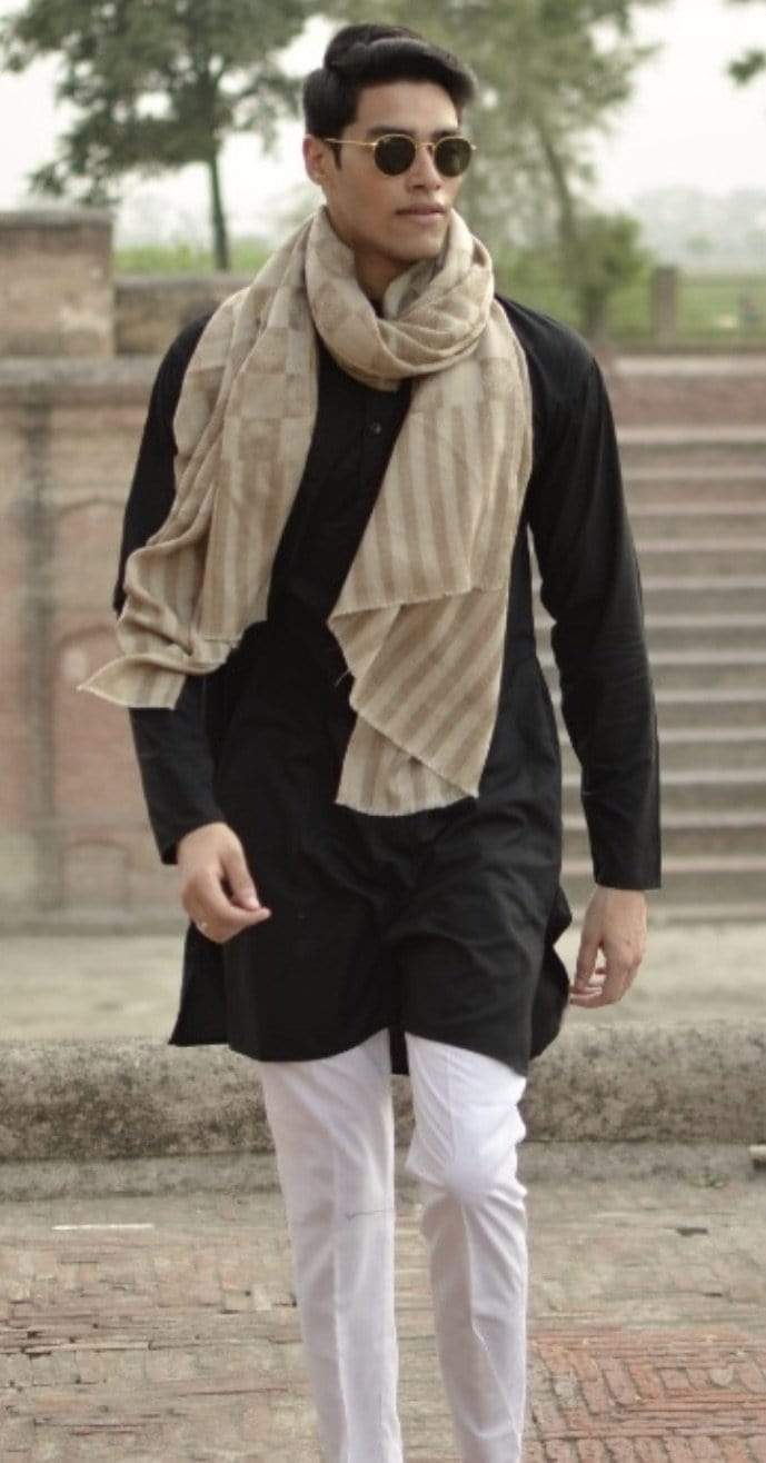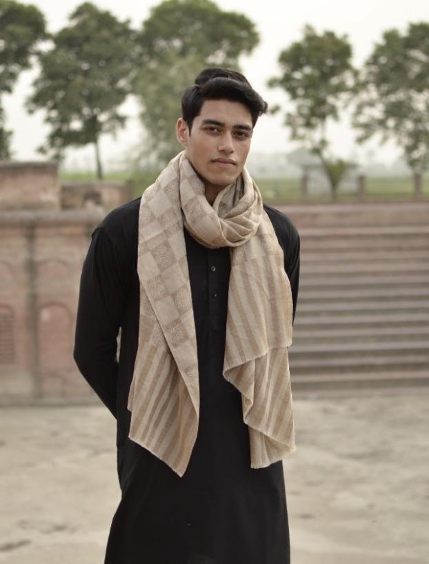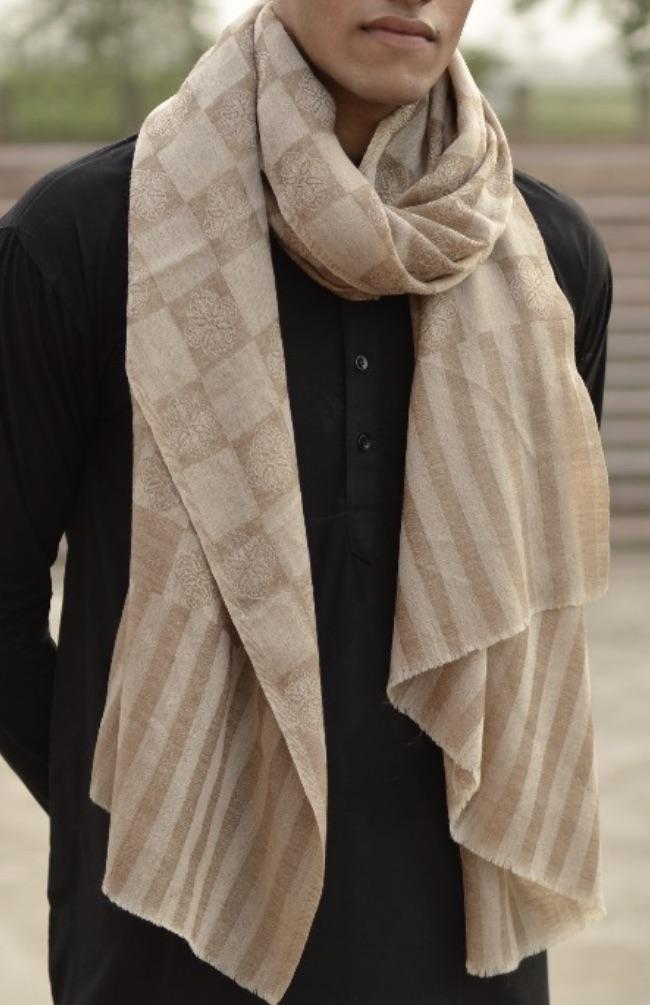 Pashtush Men'S Reversible Stole, Checkered Design Beige