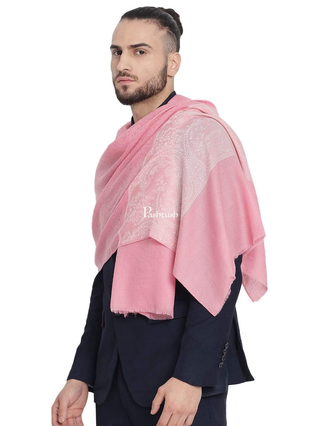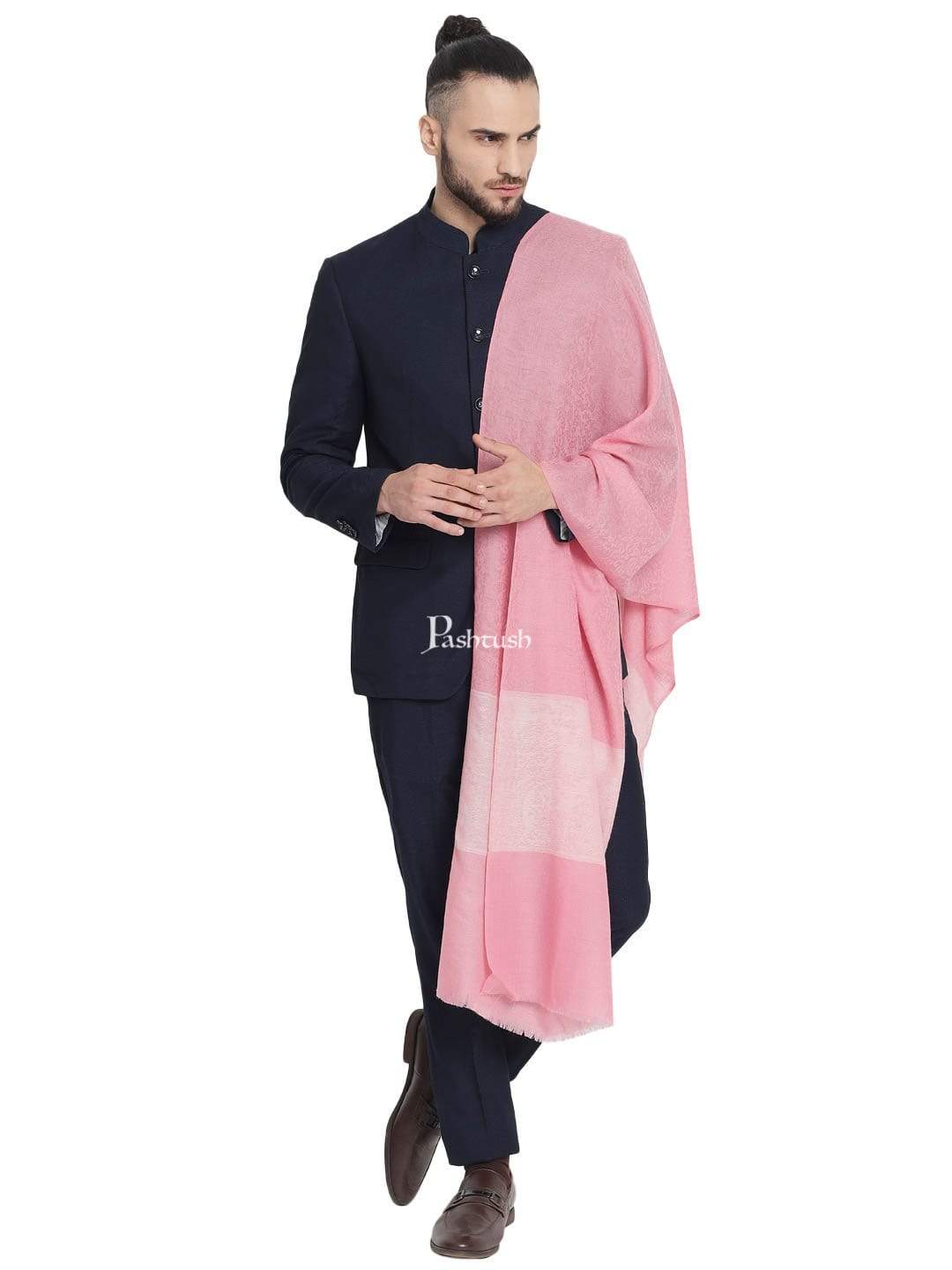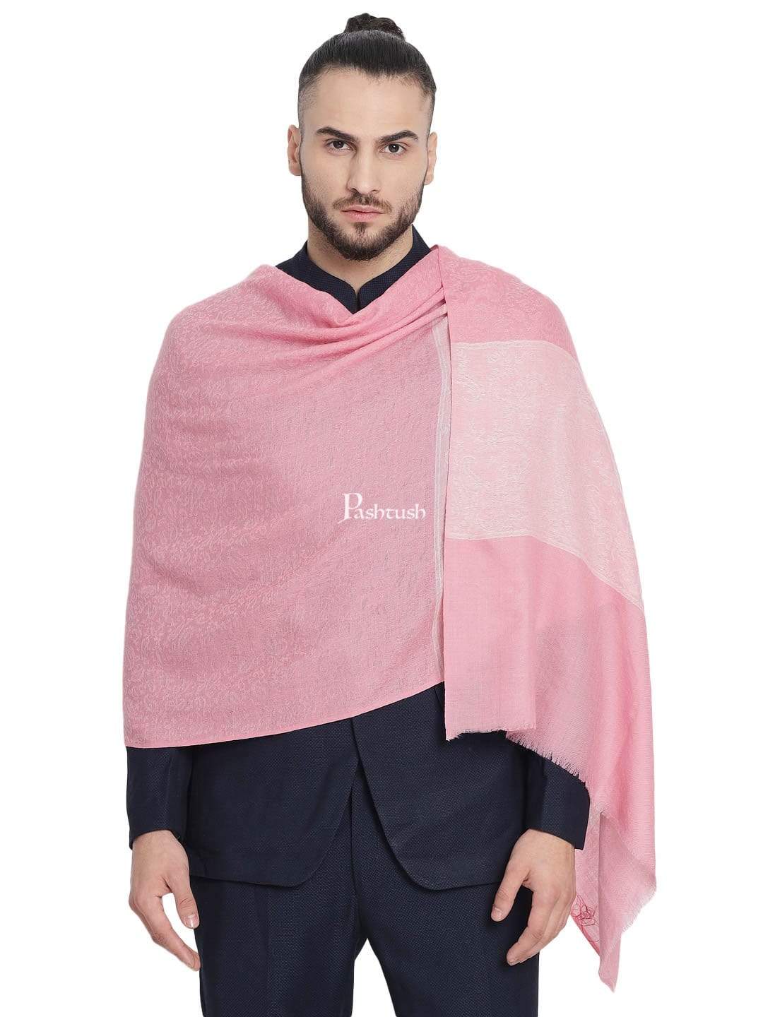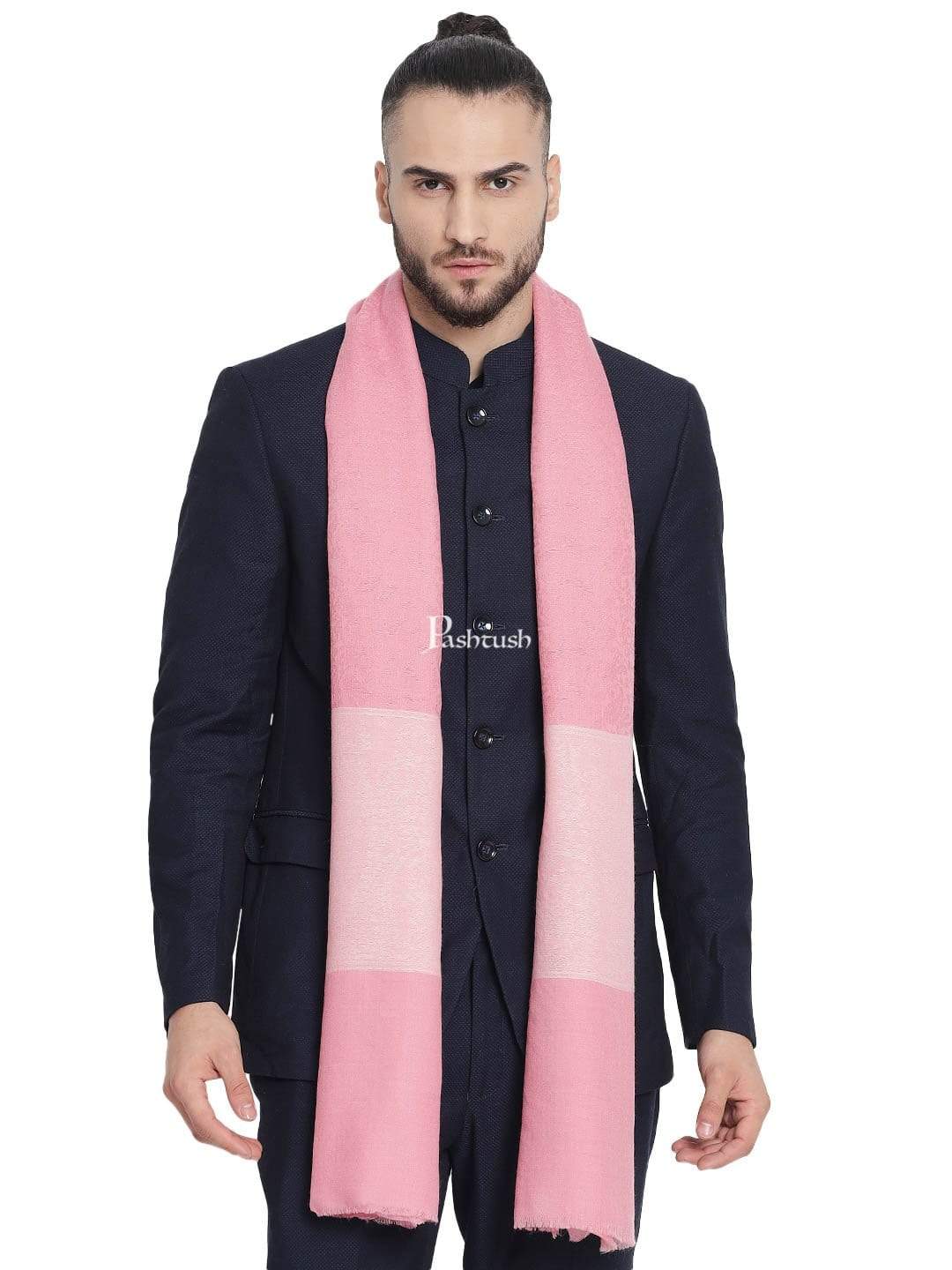 Pashtush Mens Reversible Extra Fine Wool Stole, With Paiseley Weave, Pink