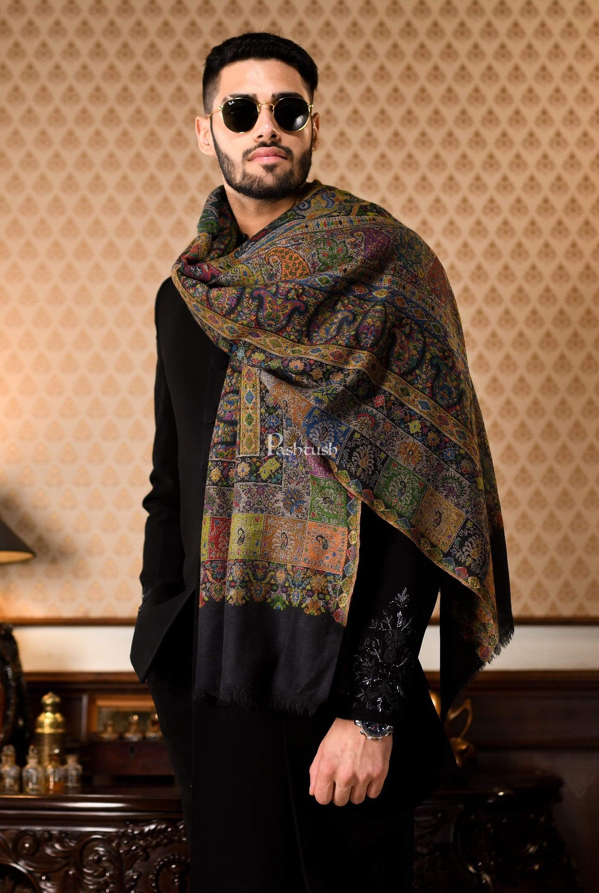 Pashtush Mens Extra Fine Ethnic Stole, Pure Wool, Woolmark Certificate