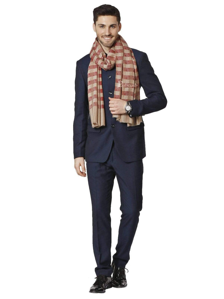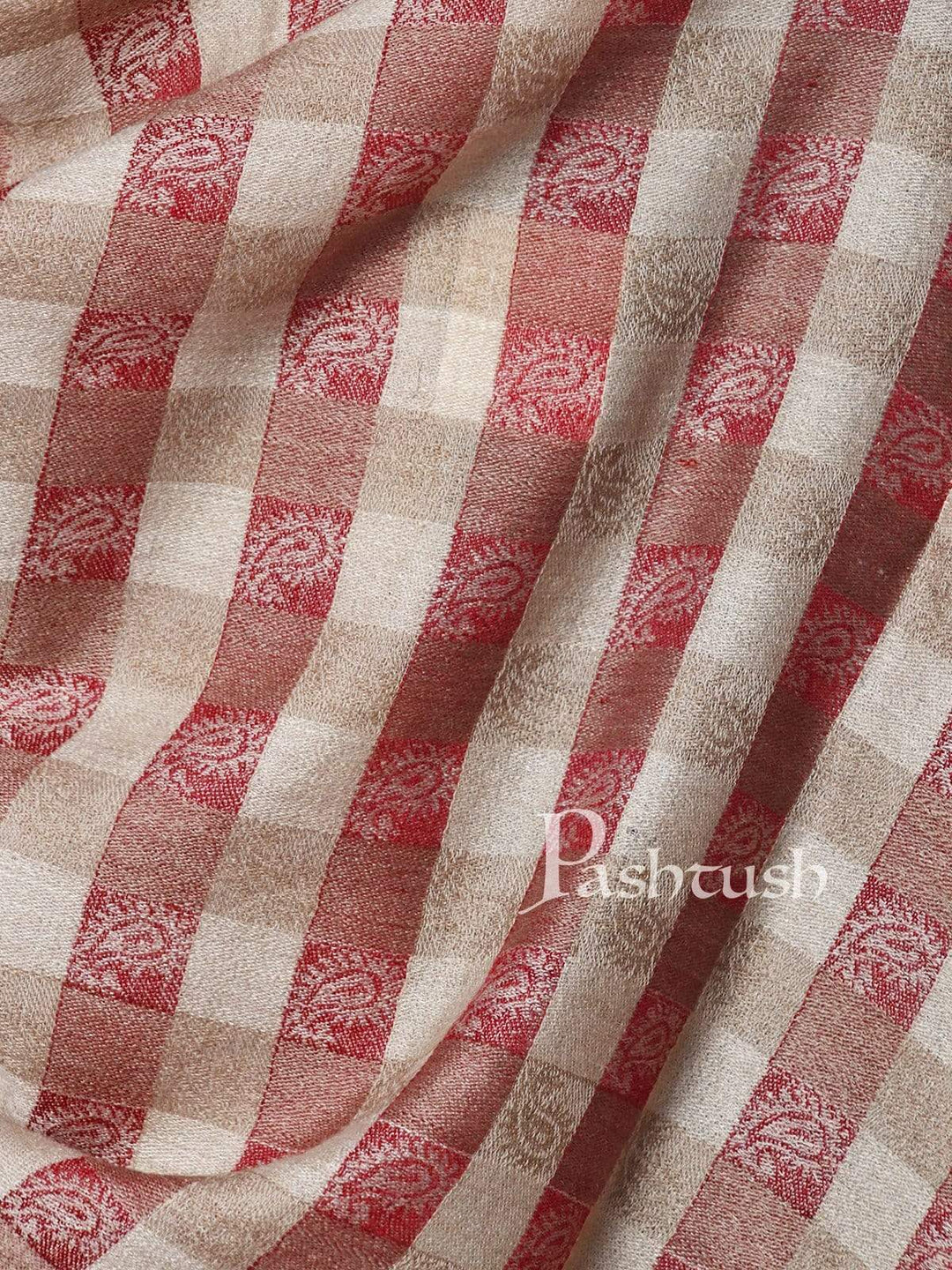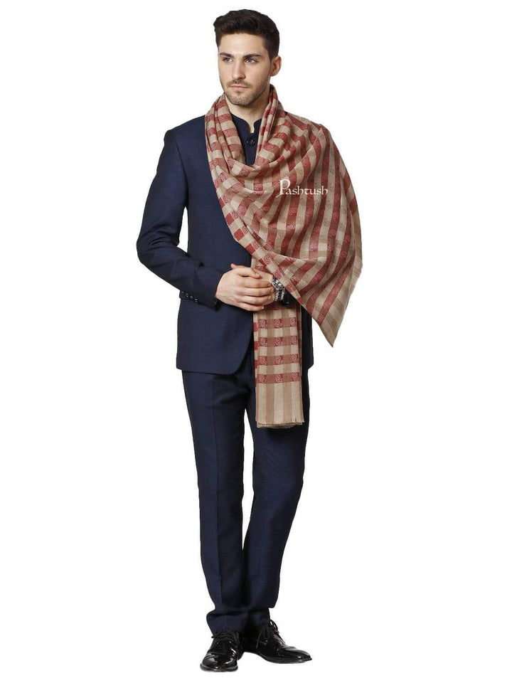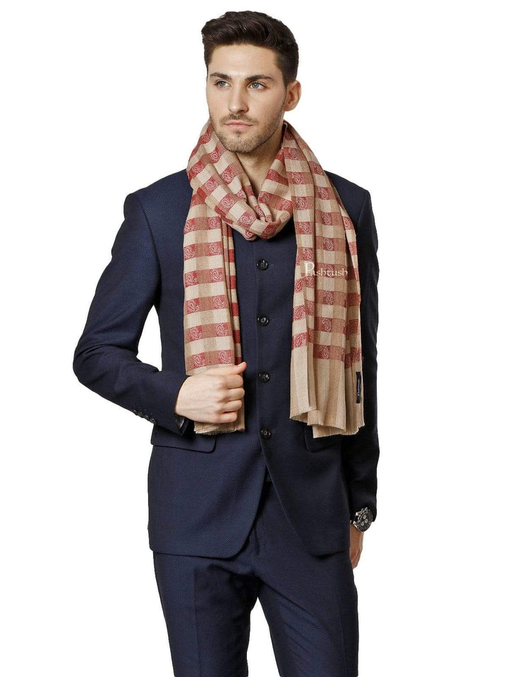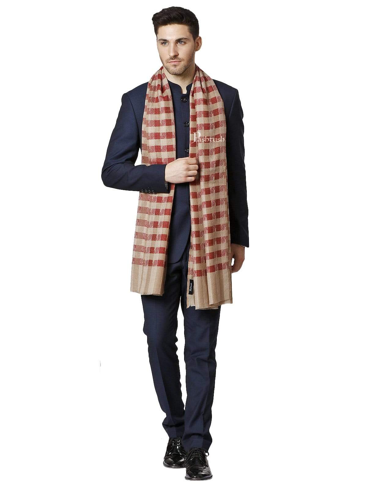 Pashtush Mens Fine Wool Checkered Stole, Crimson And Beige