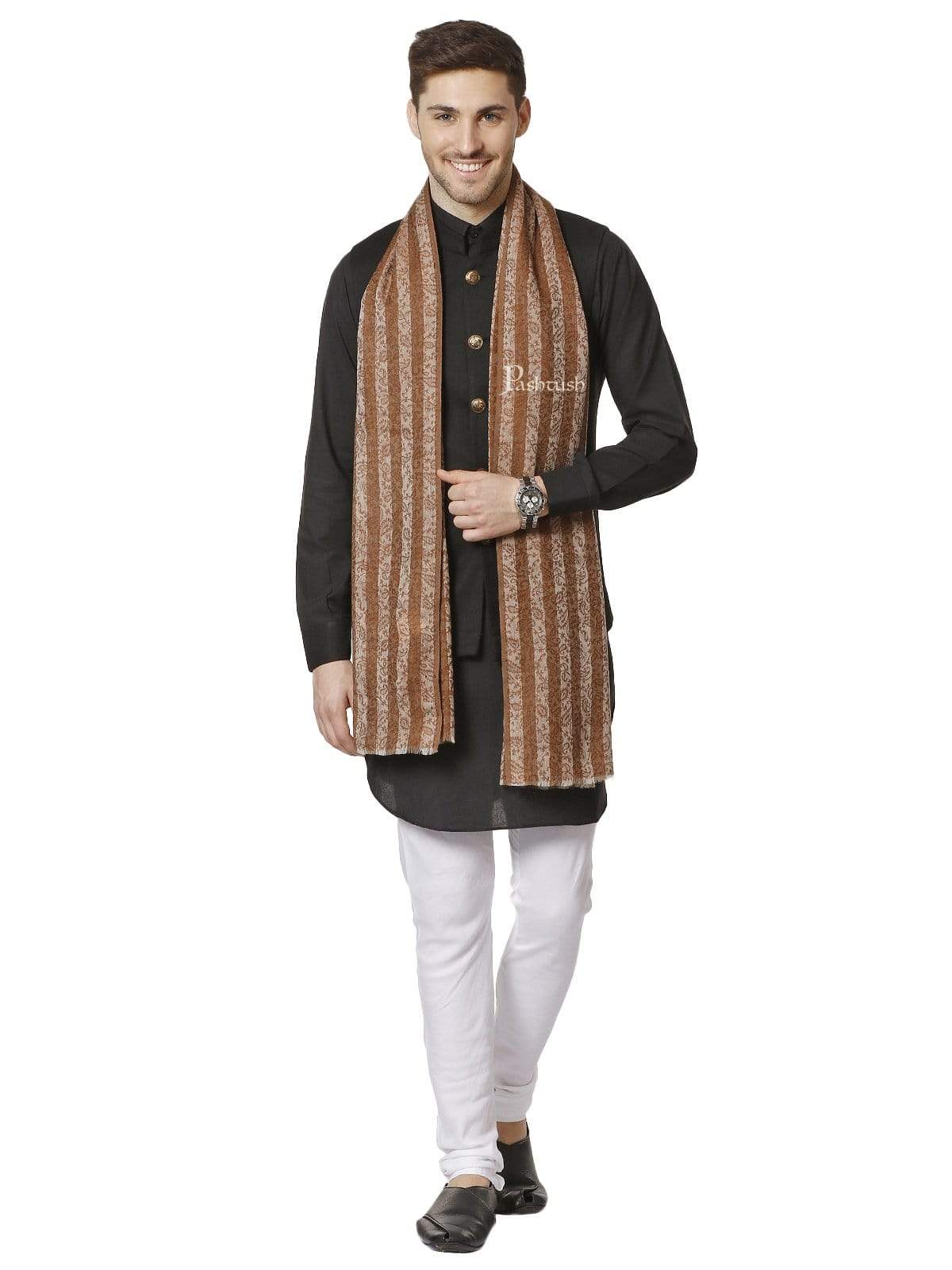 Pashtush Mens Fine Wool Striped Stole, Espresso