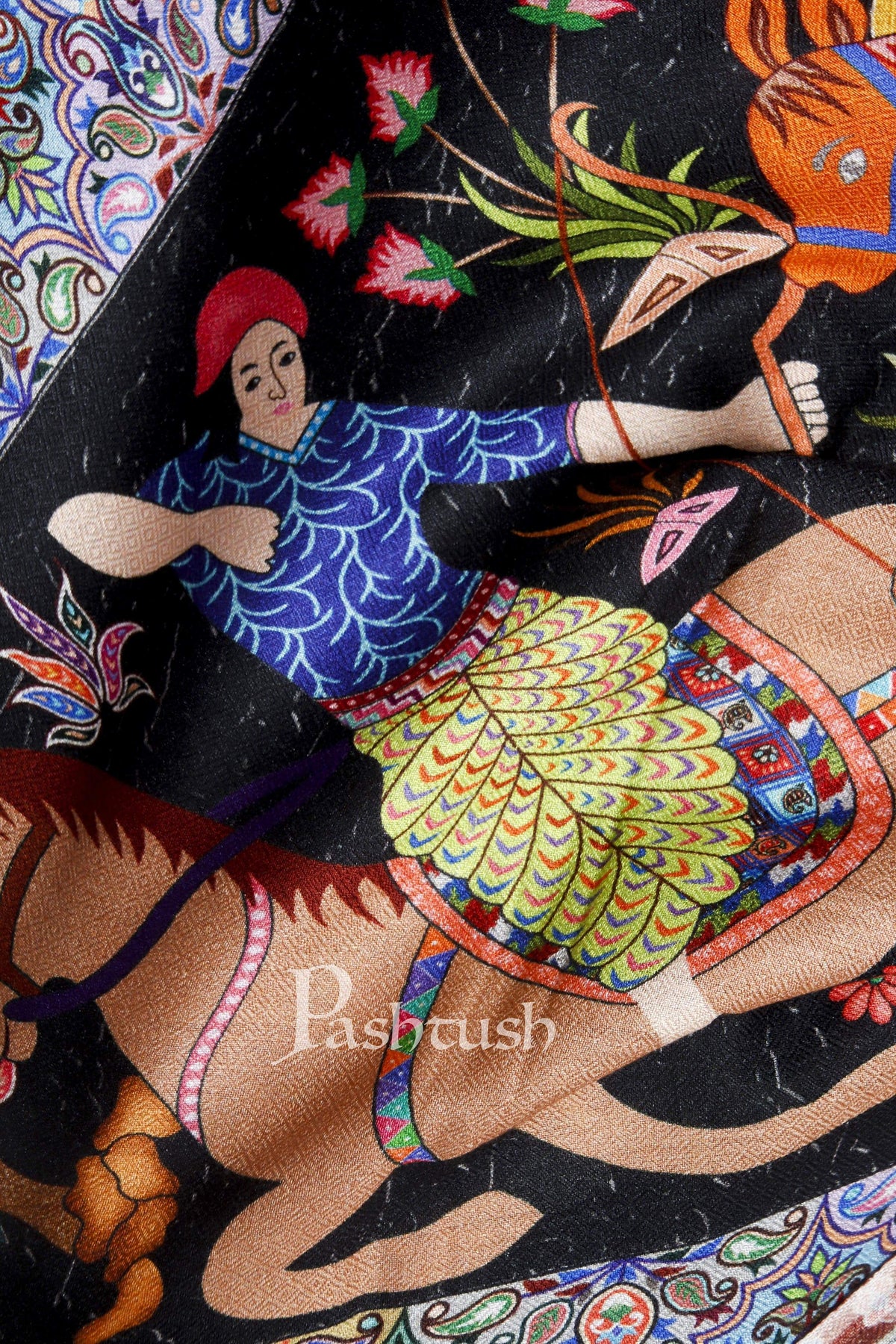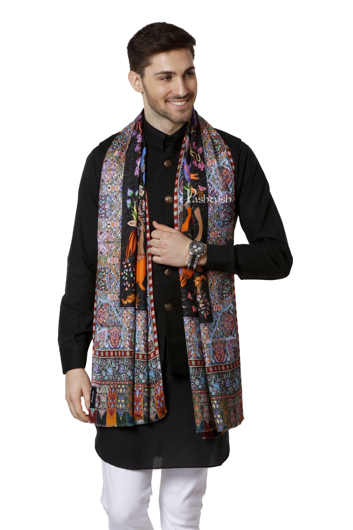 Pashtush Mens Fine Soft Bamboo Stole, Shikaardar Design - Black