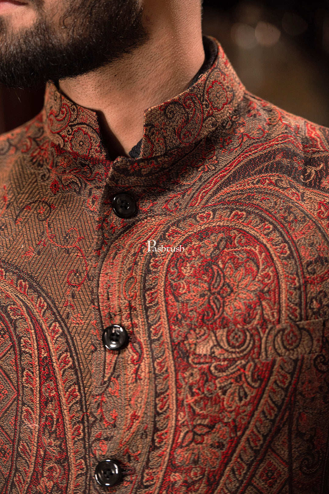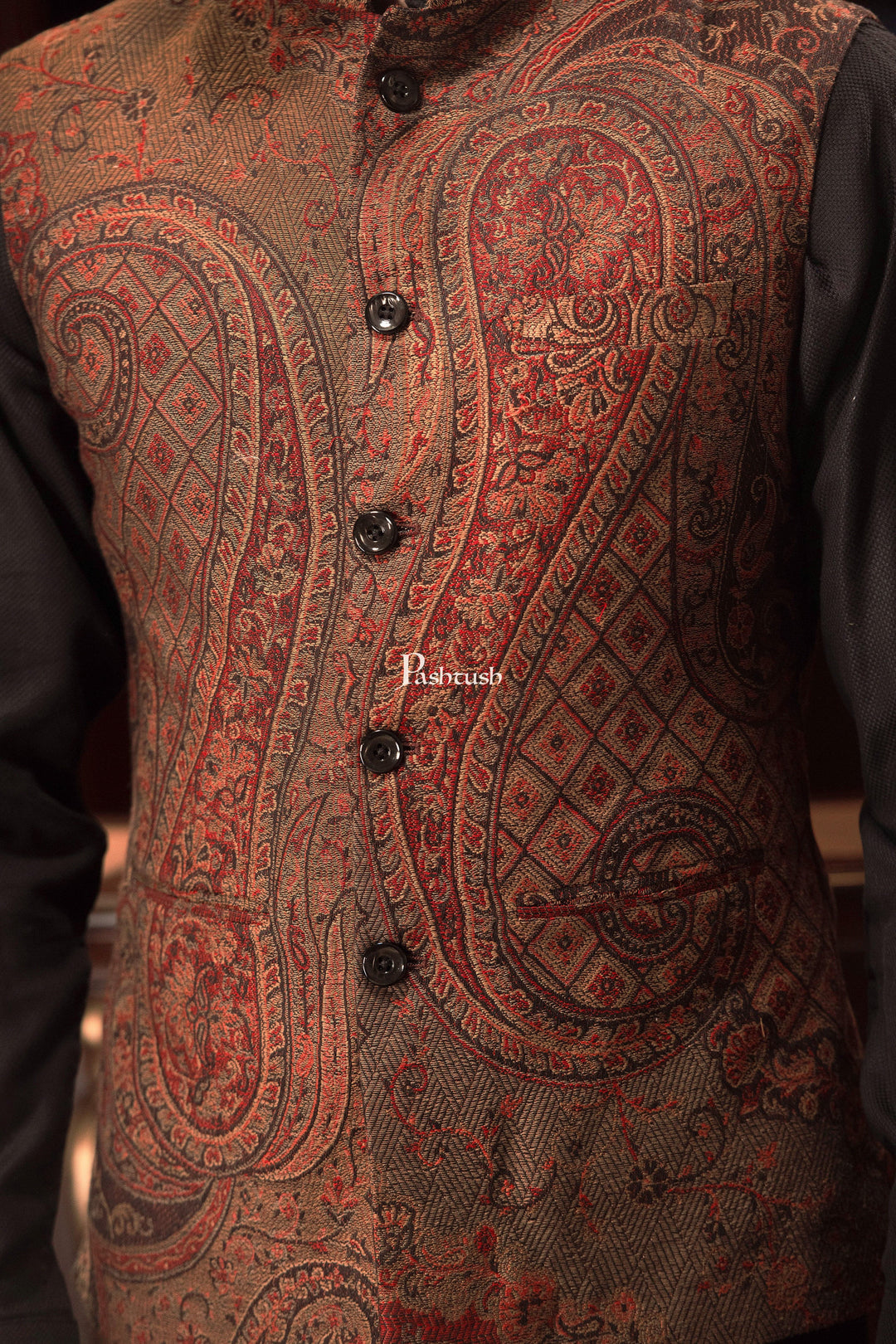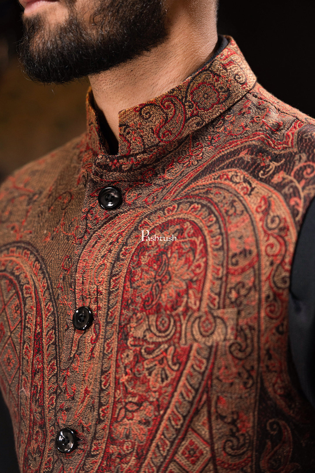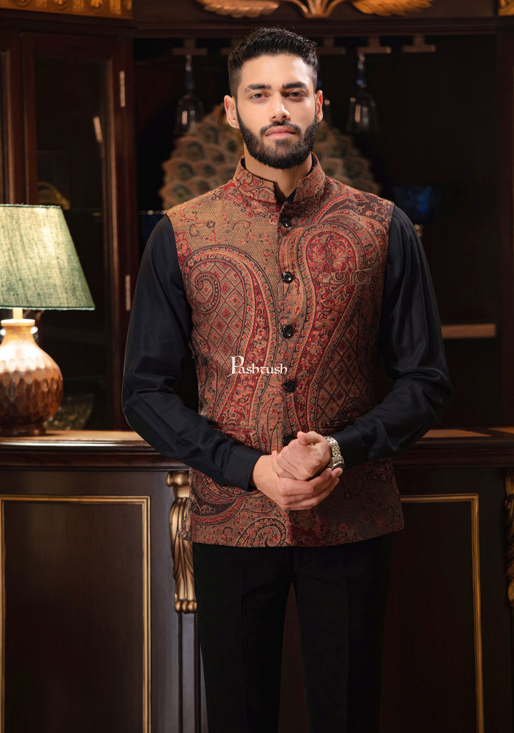 PASHTUSH MENS WOVEN JACQUARD WAISTCOAT, Structured SLIM FIT