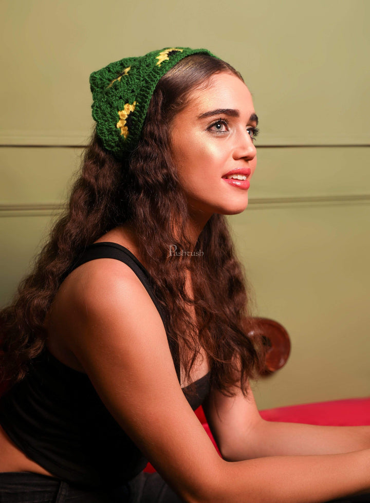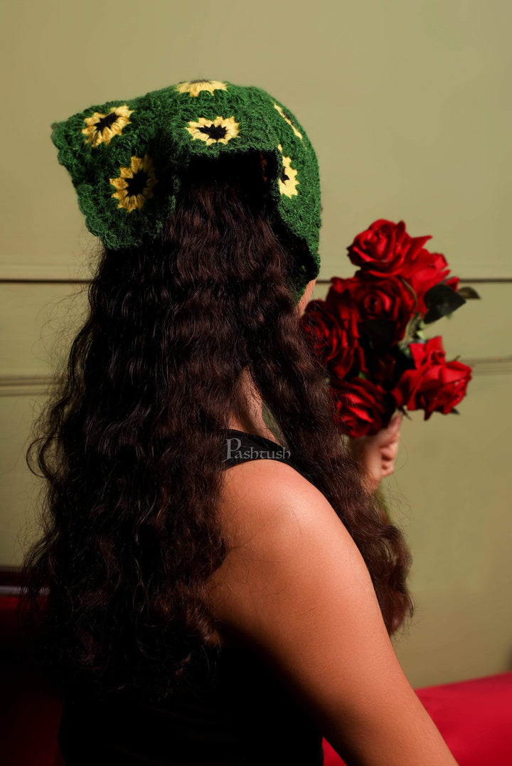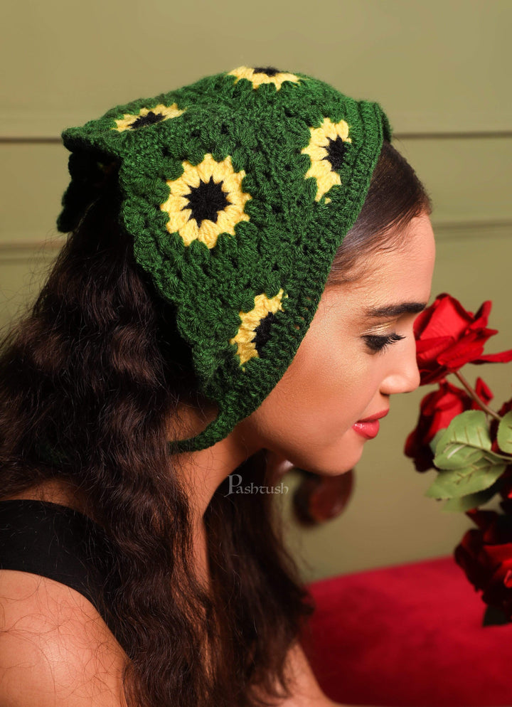 Pashtush Soft 100% Hand Knitted Sunflower Bandana Olive Green