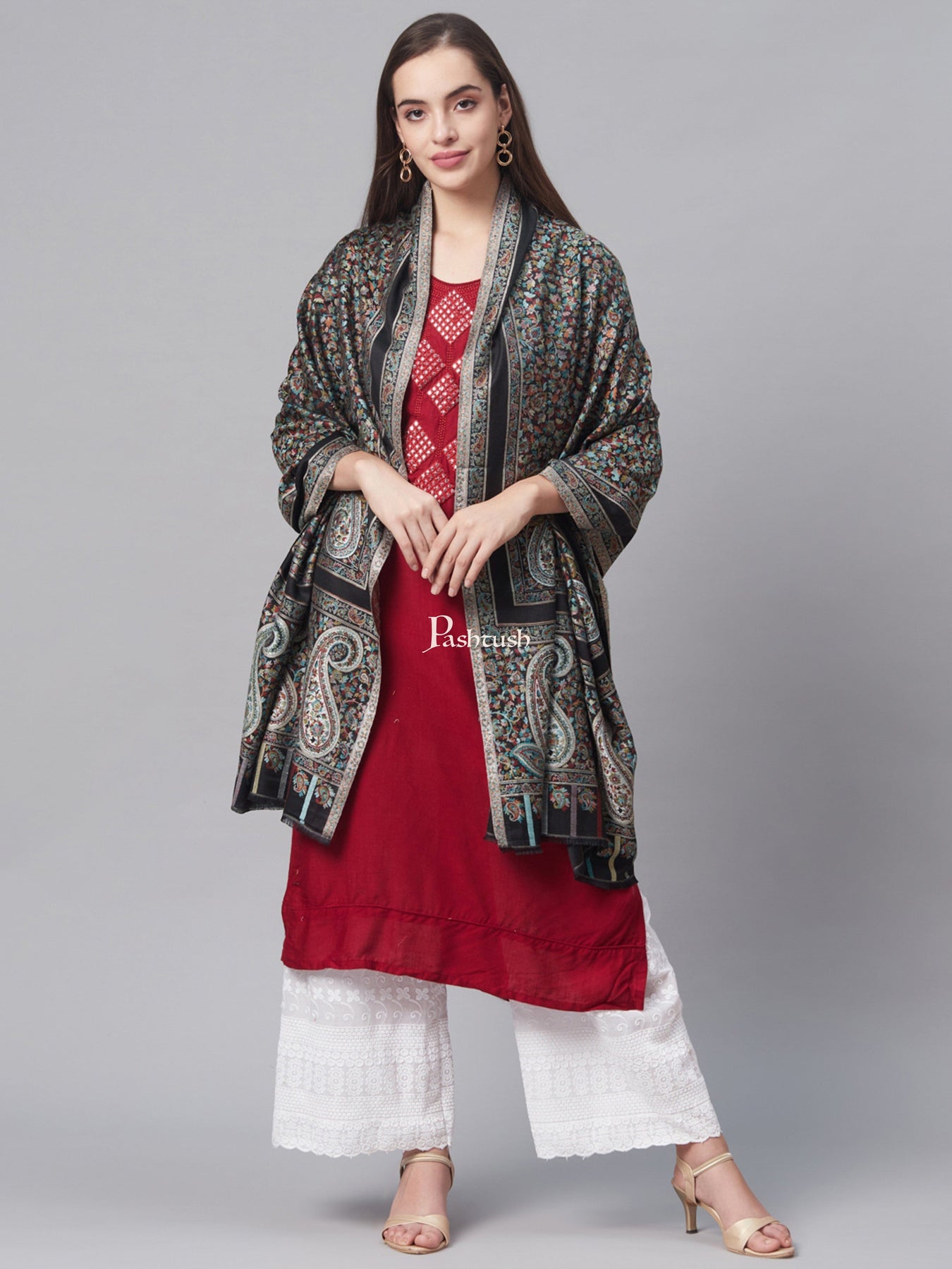 Pashtush Women'S Antique Scarf, Extra Soft Bamboo Stole, Black