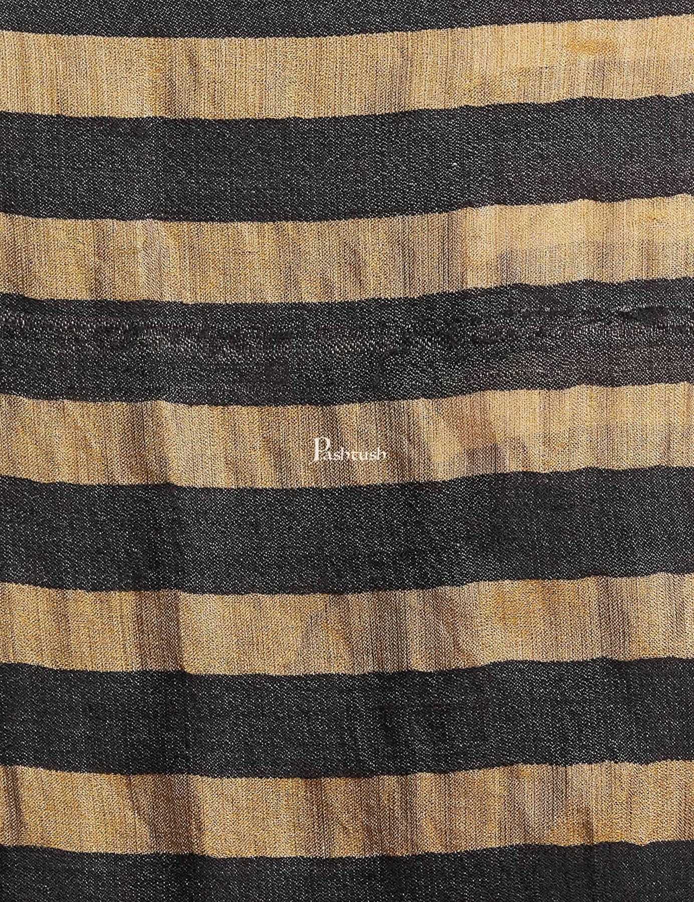 Pashtush Womens, Extra Fine Wool, Twilight Striped Scarf, With Shimmery Metallic Zari Thread Weave Black