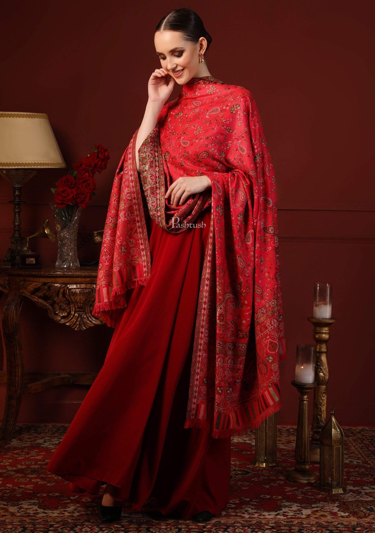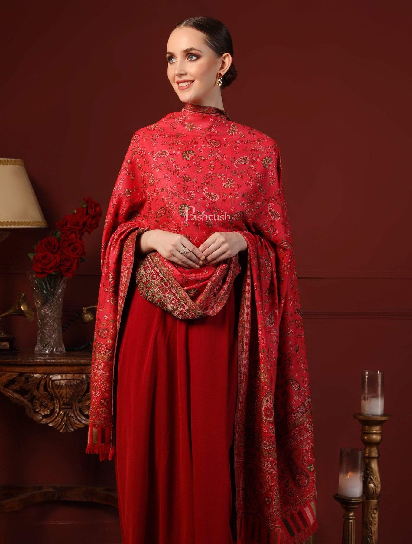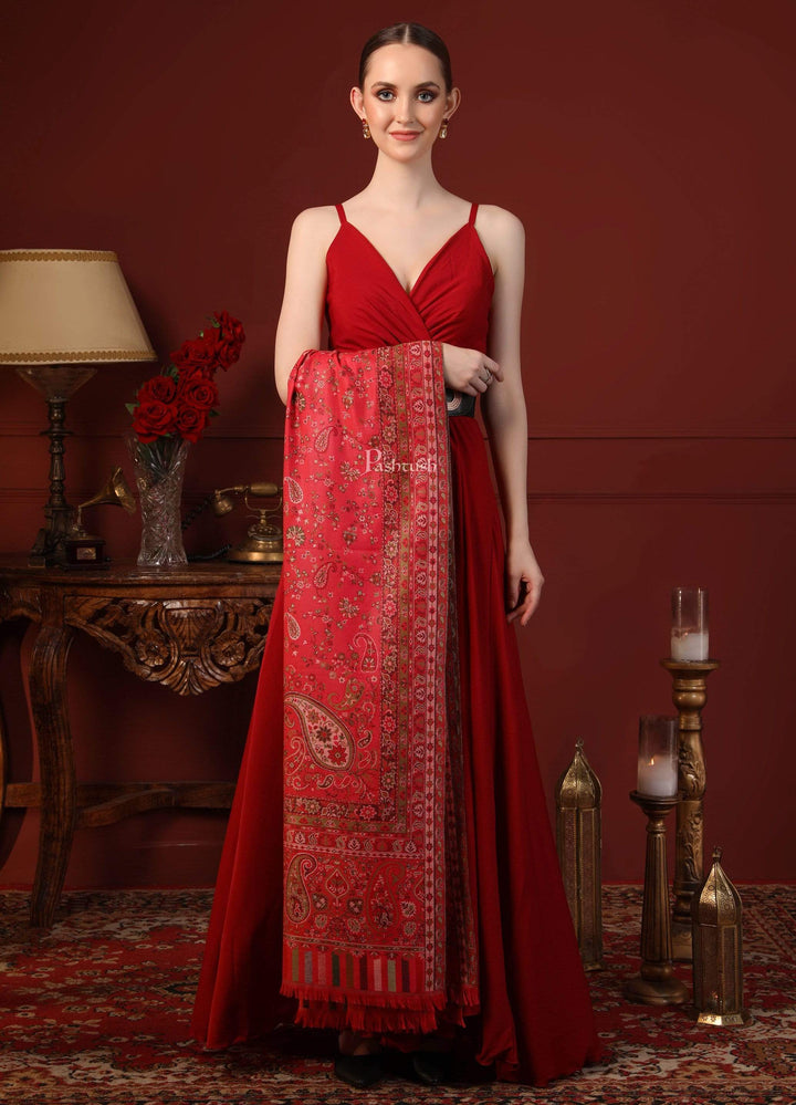 Pashtush Women Faux Pashmina Woven Design Ethnic Shawl, Fuscia Pink