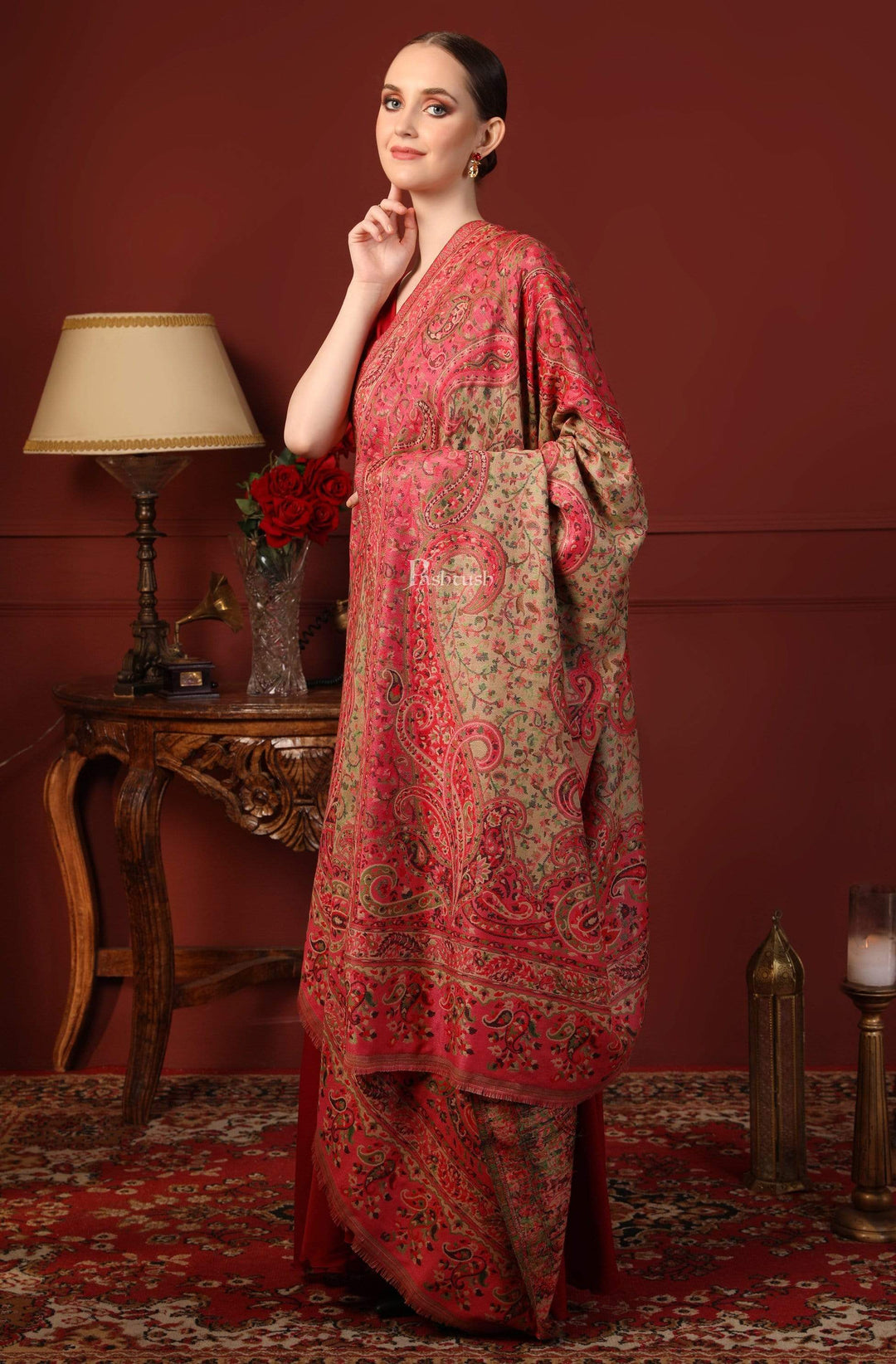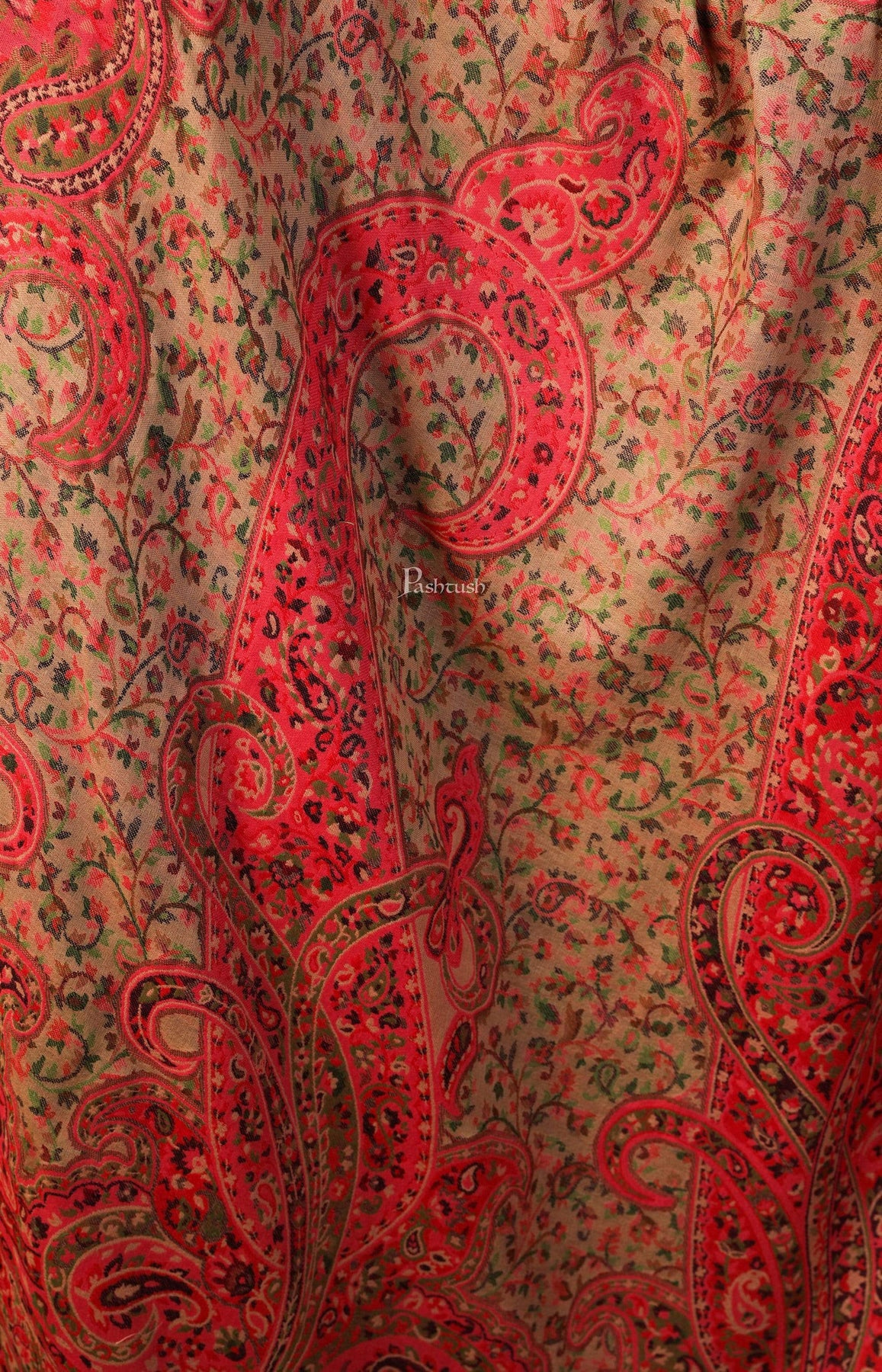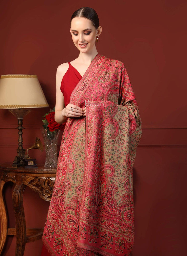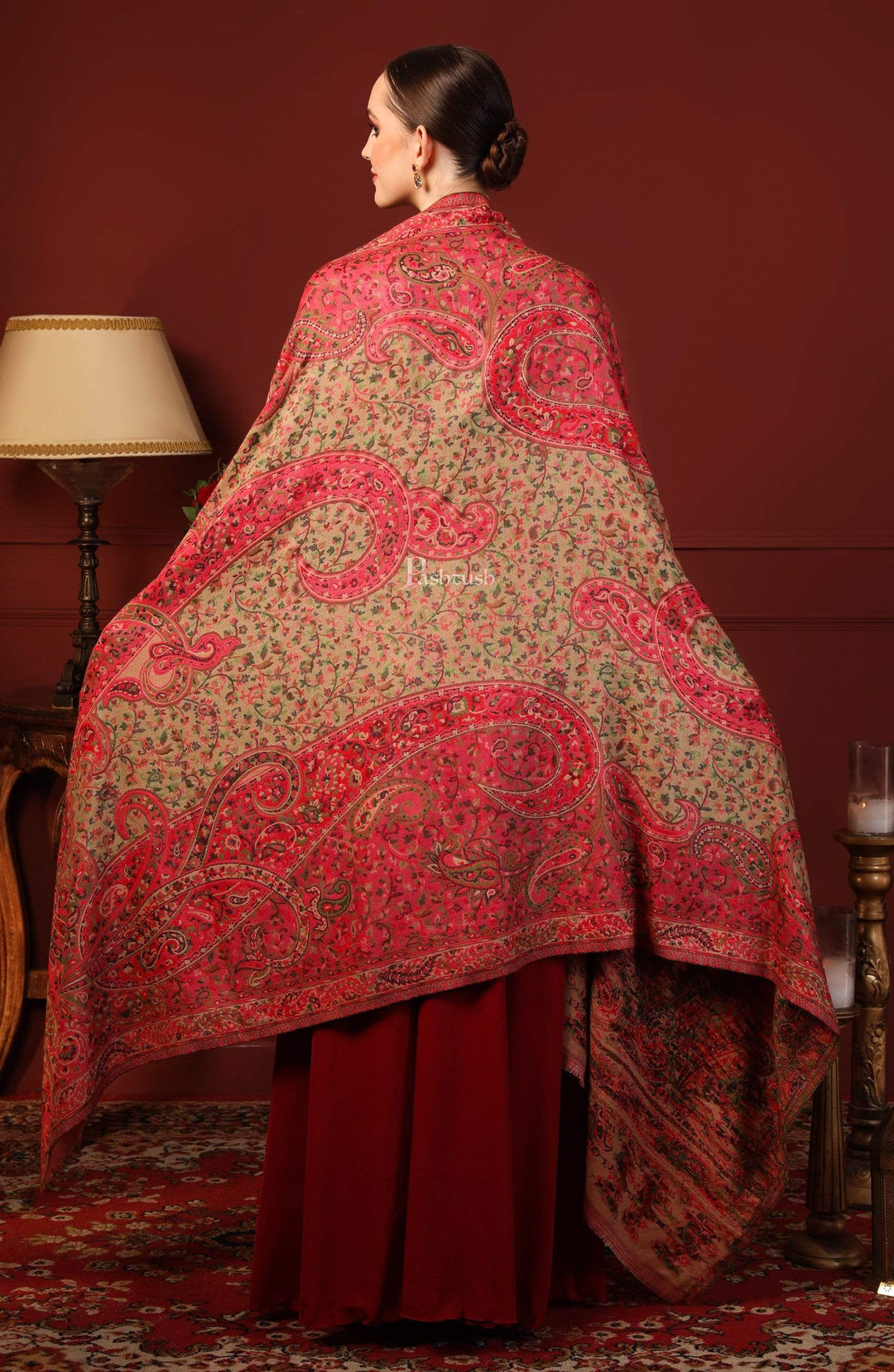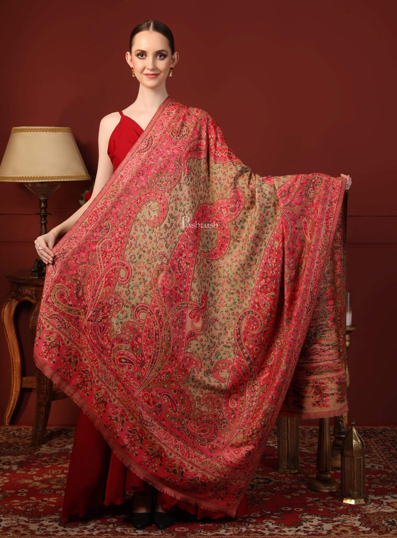 Pashtush Women Ethnic Weave Shawl, Rich Garden, Pink And Beige