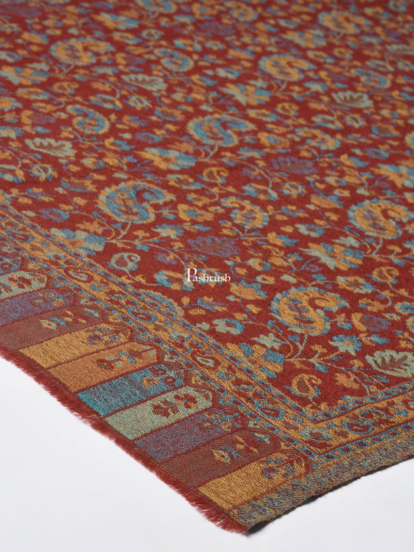 Pashtush Women'S Soft Wool, Reversible Stole, Scarf, Ethnic Weave, Deep Maroon