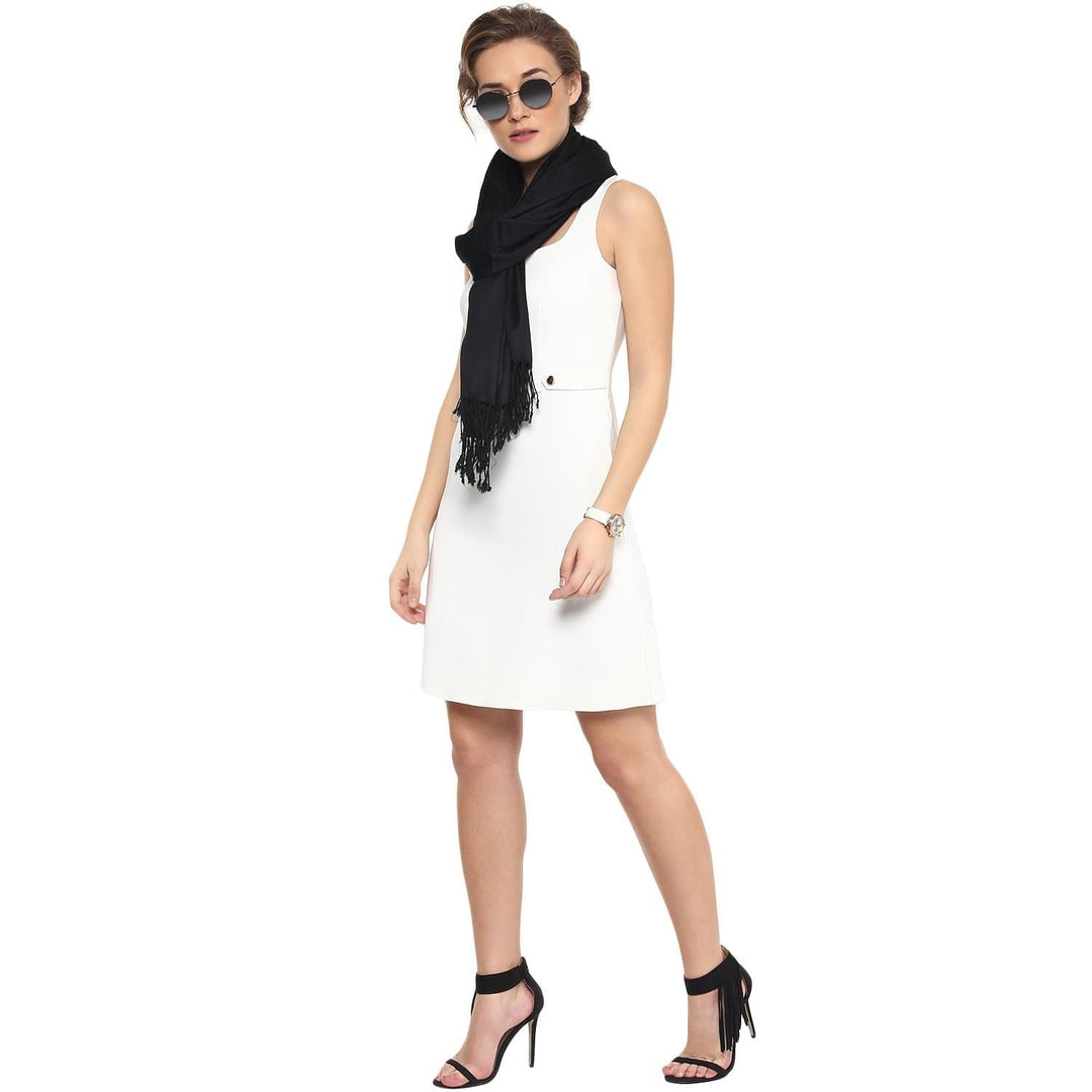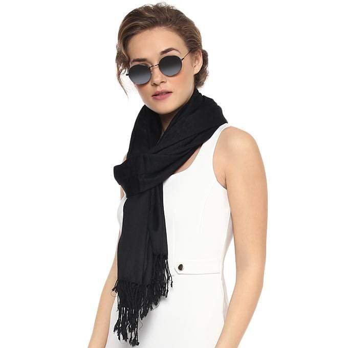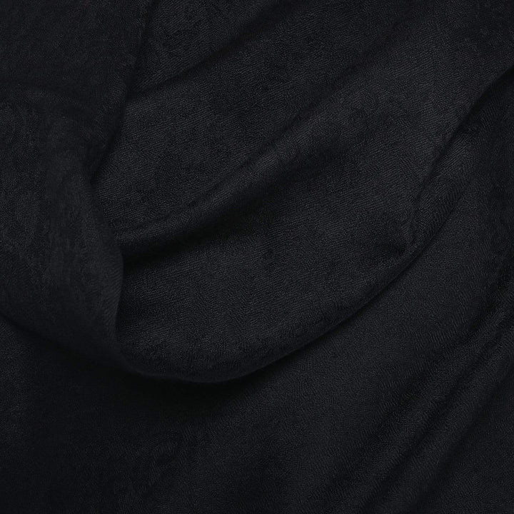 Pashtush Womens Stole, Fine Wool Scarf, Paisley Jacquard Weave, Black