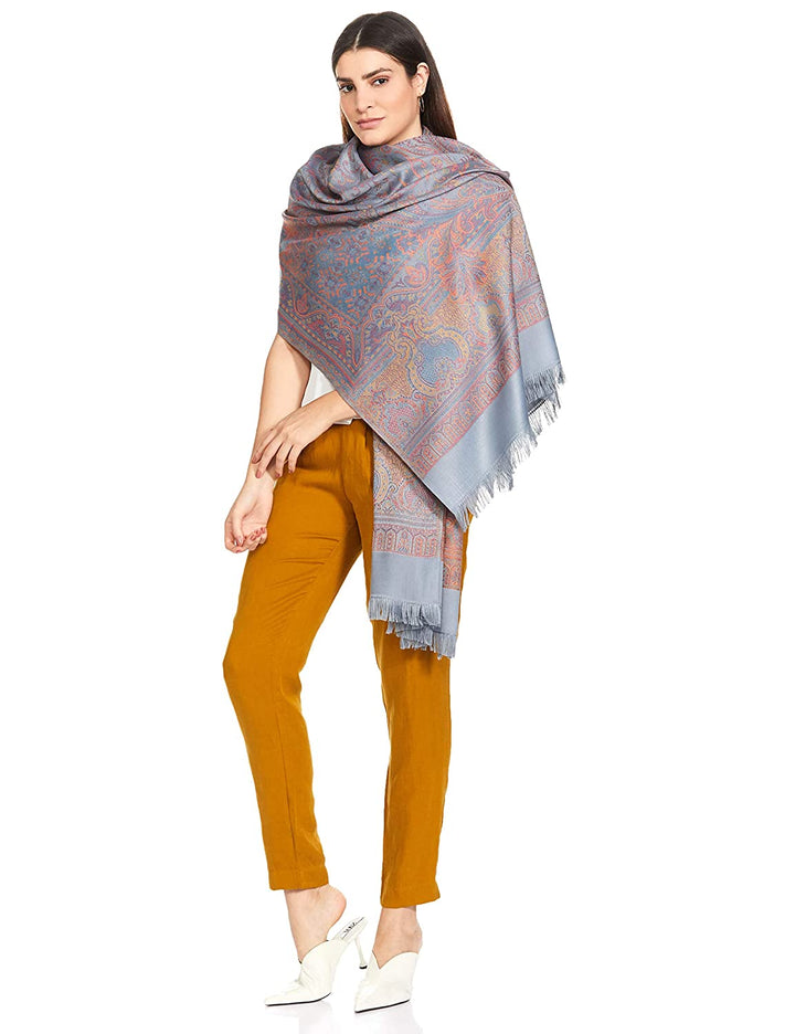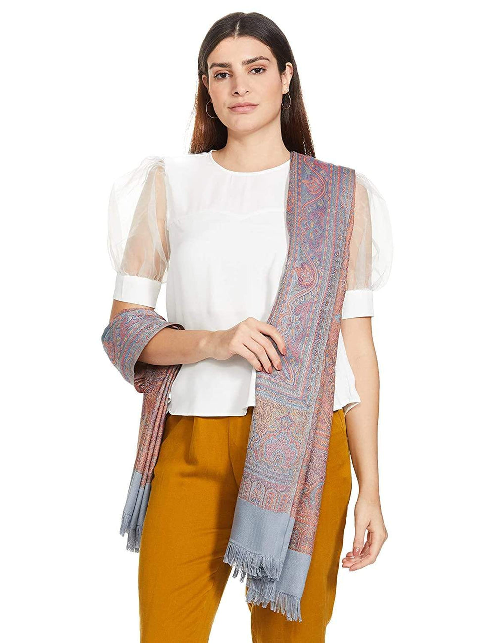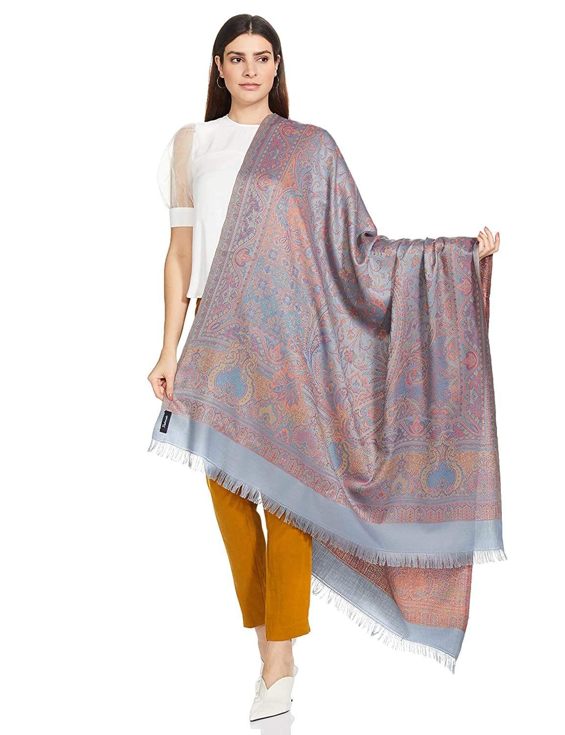 Pashtush Women'S Jamawar Shawl, Slate Grey