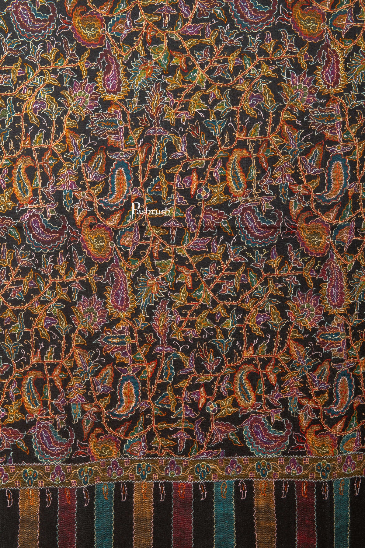Pashtush Women’s Pure Pashmina Outline Kani Jamawar Shawl, Handwoven Kani with Delicate Outline hand Embroidery, Black