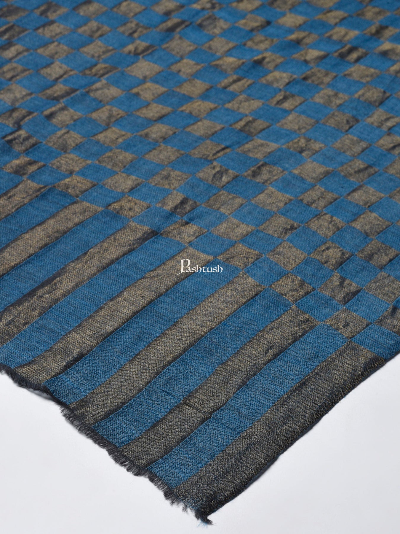Pashtush Women Teal Blue Charcoal Grey Woven Design Designer Stole