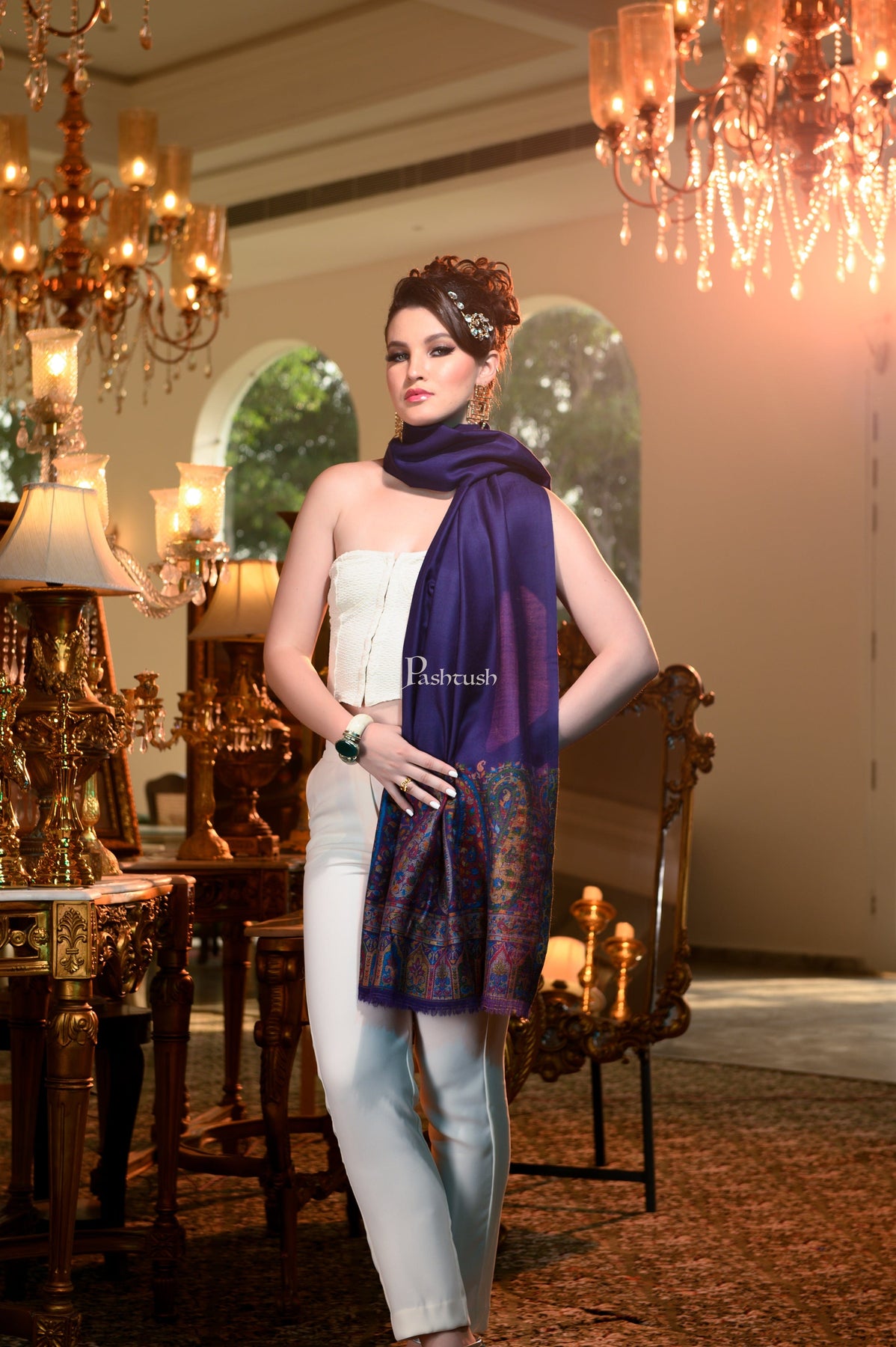 Pashtush Womens 100% Pure Wool With Woolmark Certificate Shawl, Paisley Palla Design, Blue