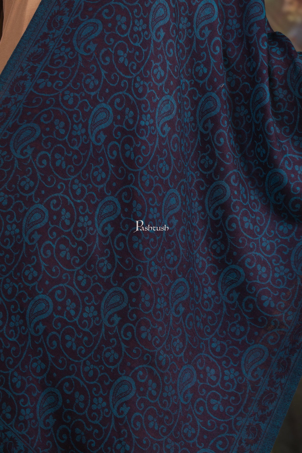 Pashtush Womens 100% Pure Wool With Woolmark Certificate Stole, Paisley Weave Design, Blue