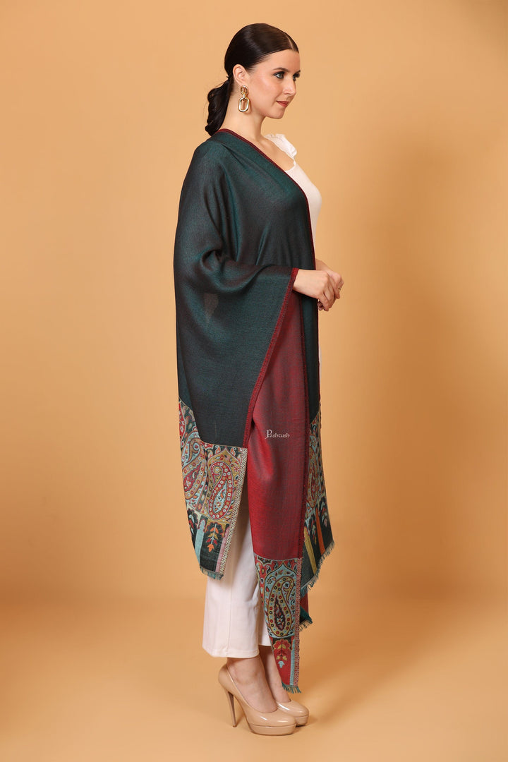Pashtush womens Bamboo stole, Reversible Ethnic Weave Palla design, Multicolour
