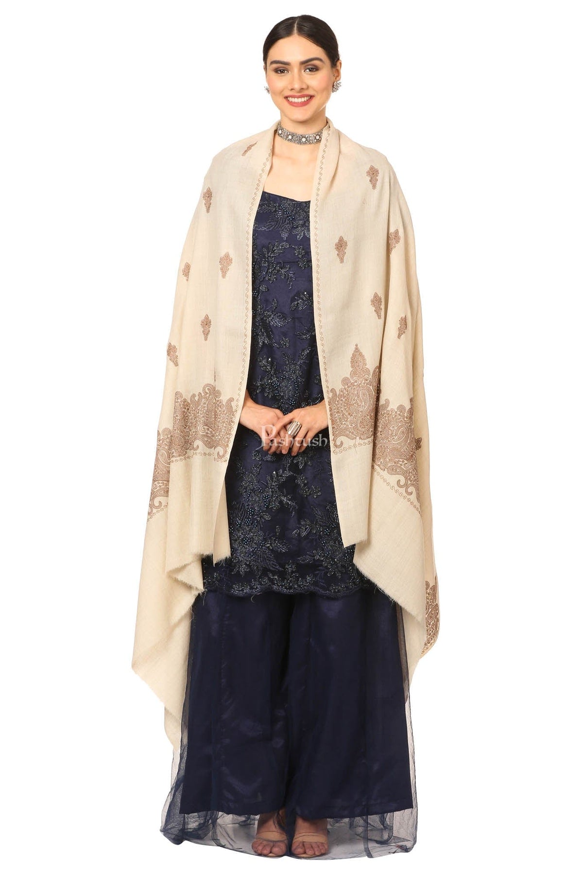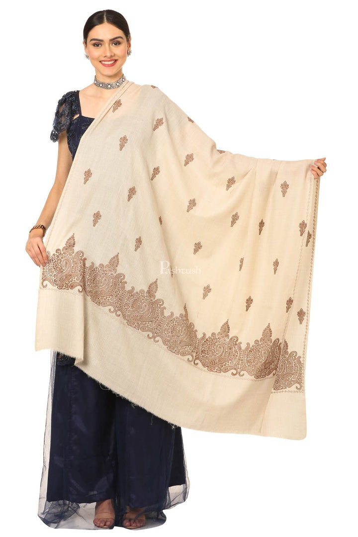 Pashtush Womens, Extra Fine Palla Embroidery Shawl, With Tone On Tone Needlework, Wool Design, Soft And Extra Fine