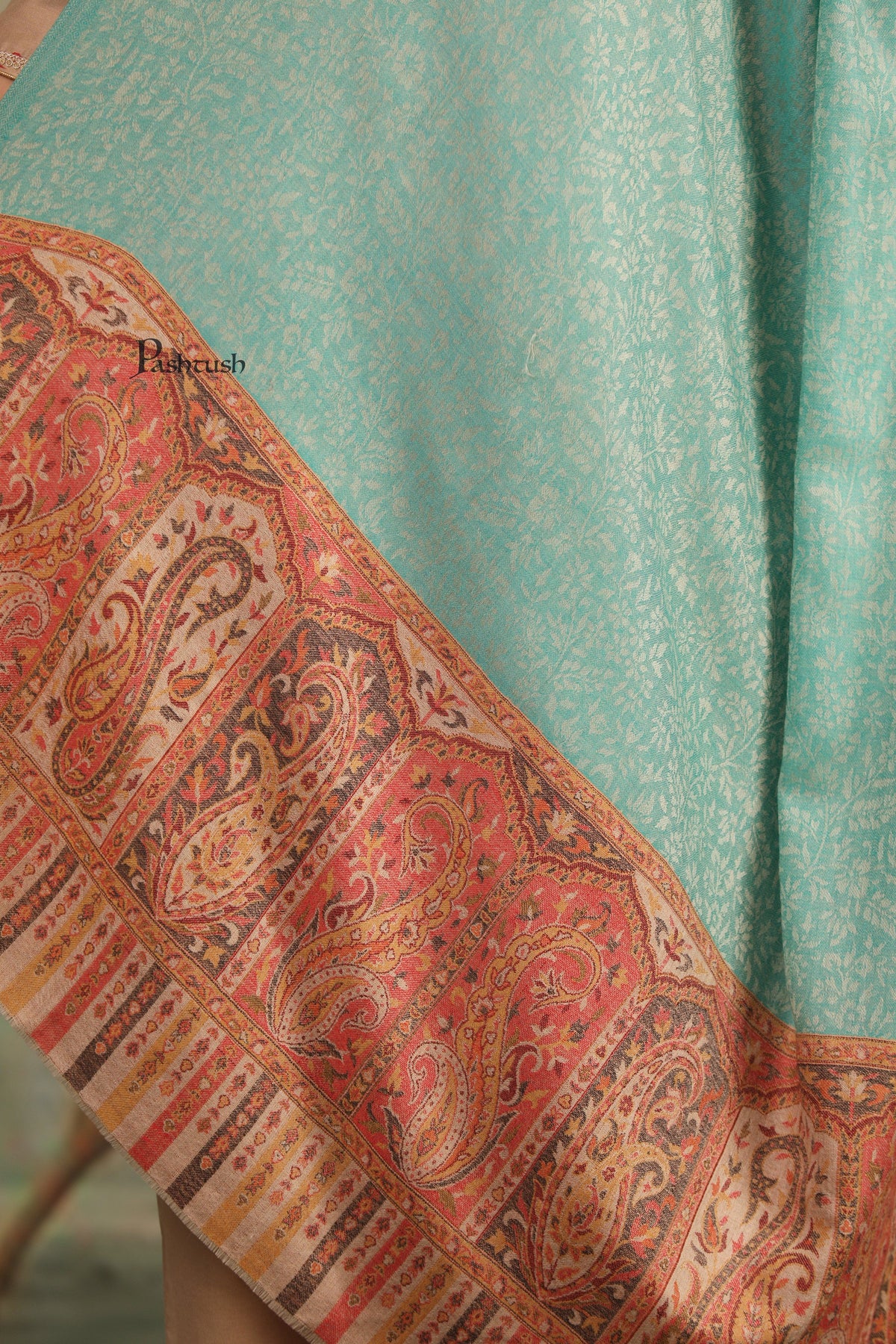 Pashtush Womens Extra Fine Wool Shawl, Ambi Palla Design, Seagreen
