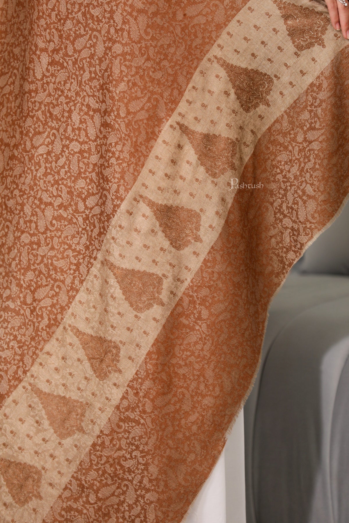 Pashtush Womens Extra Fine Wool Shawl, Tone On Tone Embroidery Design, Brown