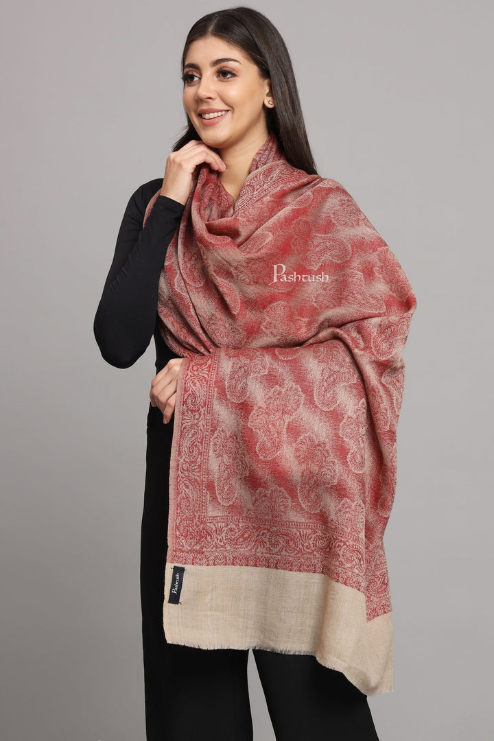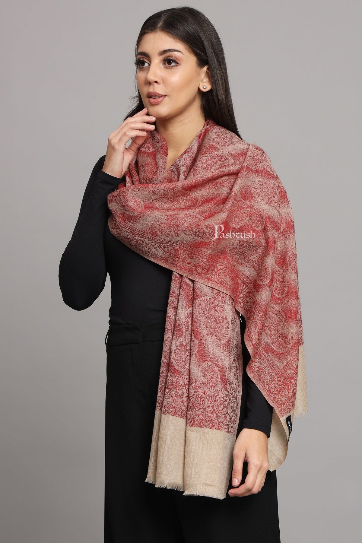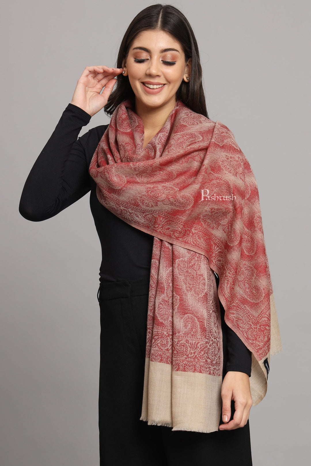 Pashtush Womens Extra Fine Wool Stole, Design, Maroon