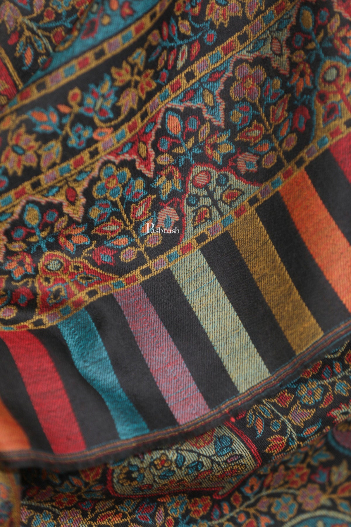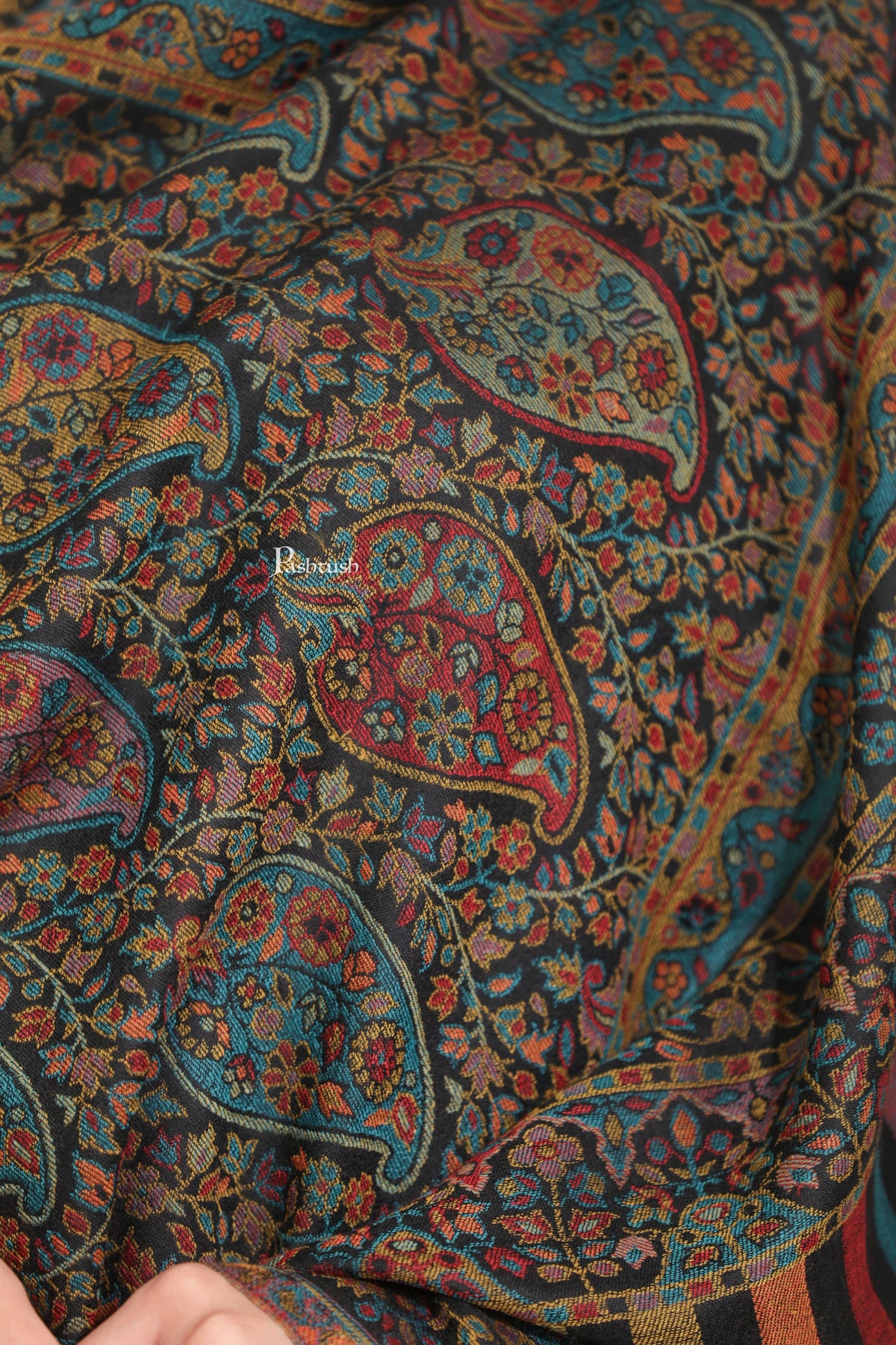 Pashtush Womens Extra Fine Wool Stole, Paisley Design, Black