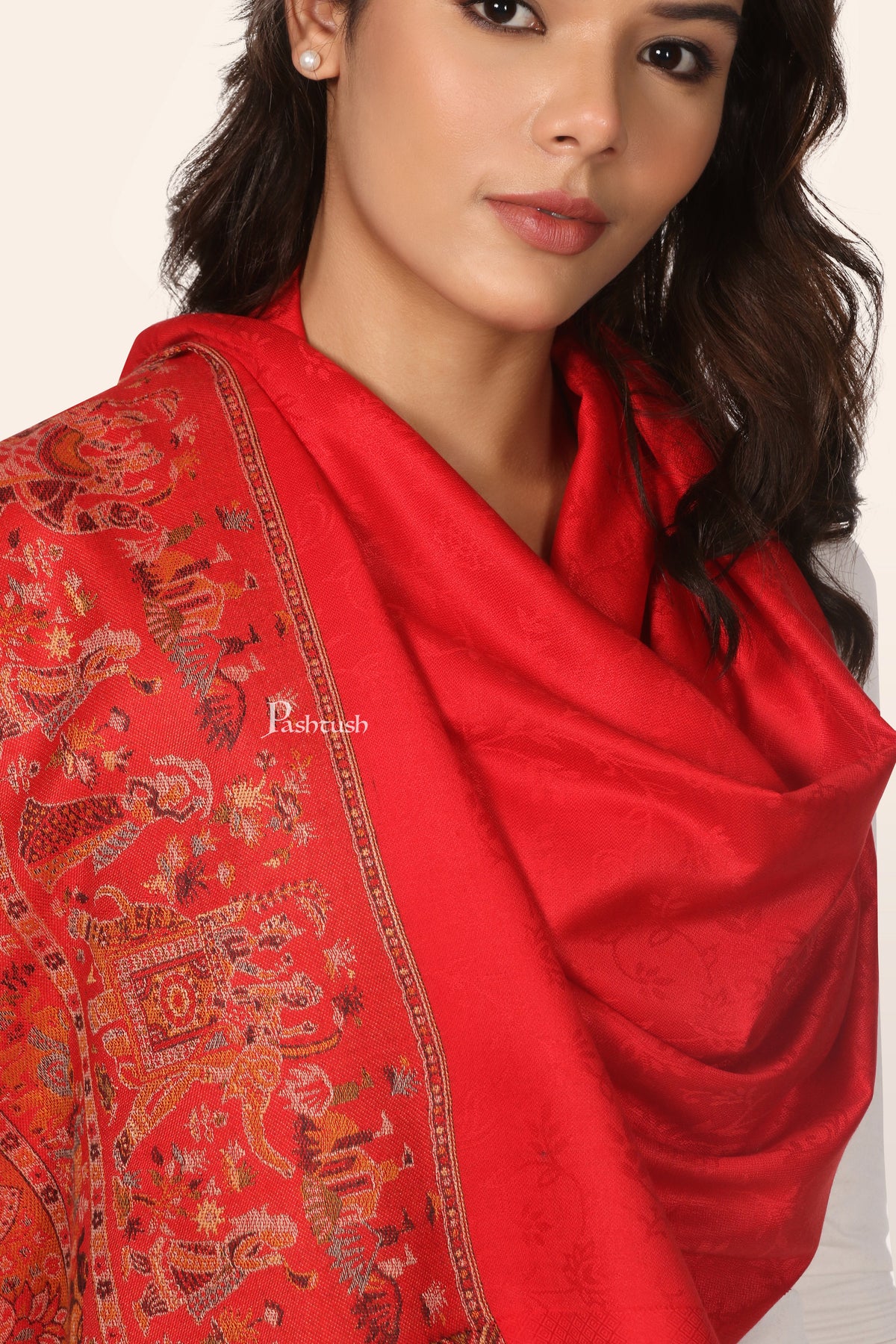 Pashtush Womens Stole, Faux Pashmina with Doli Palla Woven Design, Red