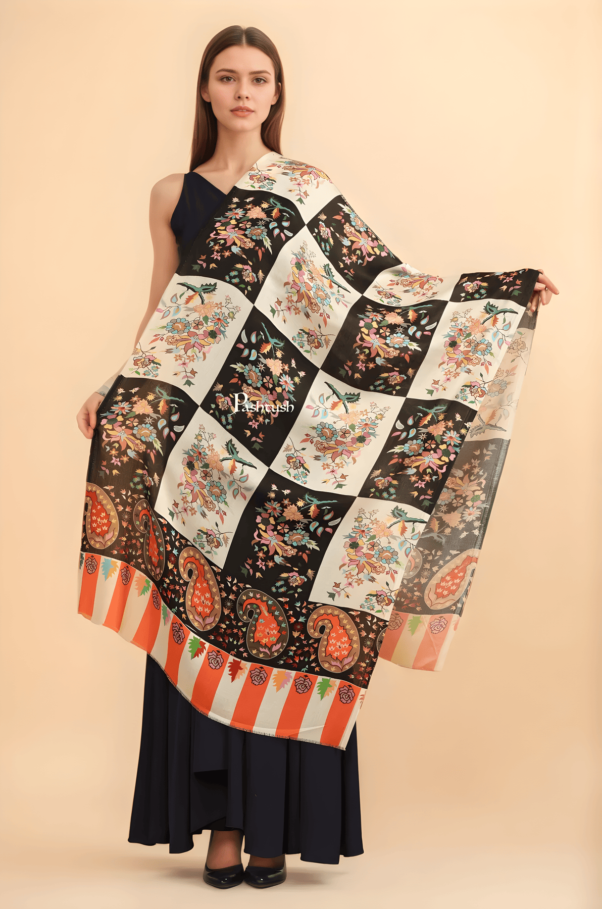 Pashtush Womens Extra Soft Bamboo Stole, Printed Paisley Design, Multicolour