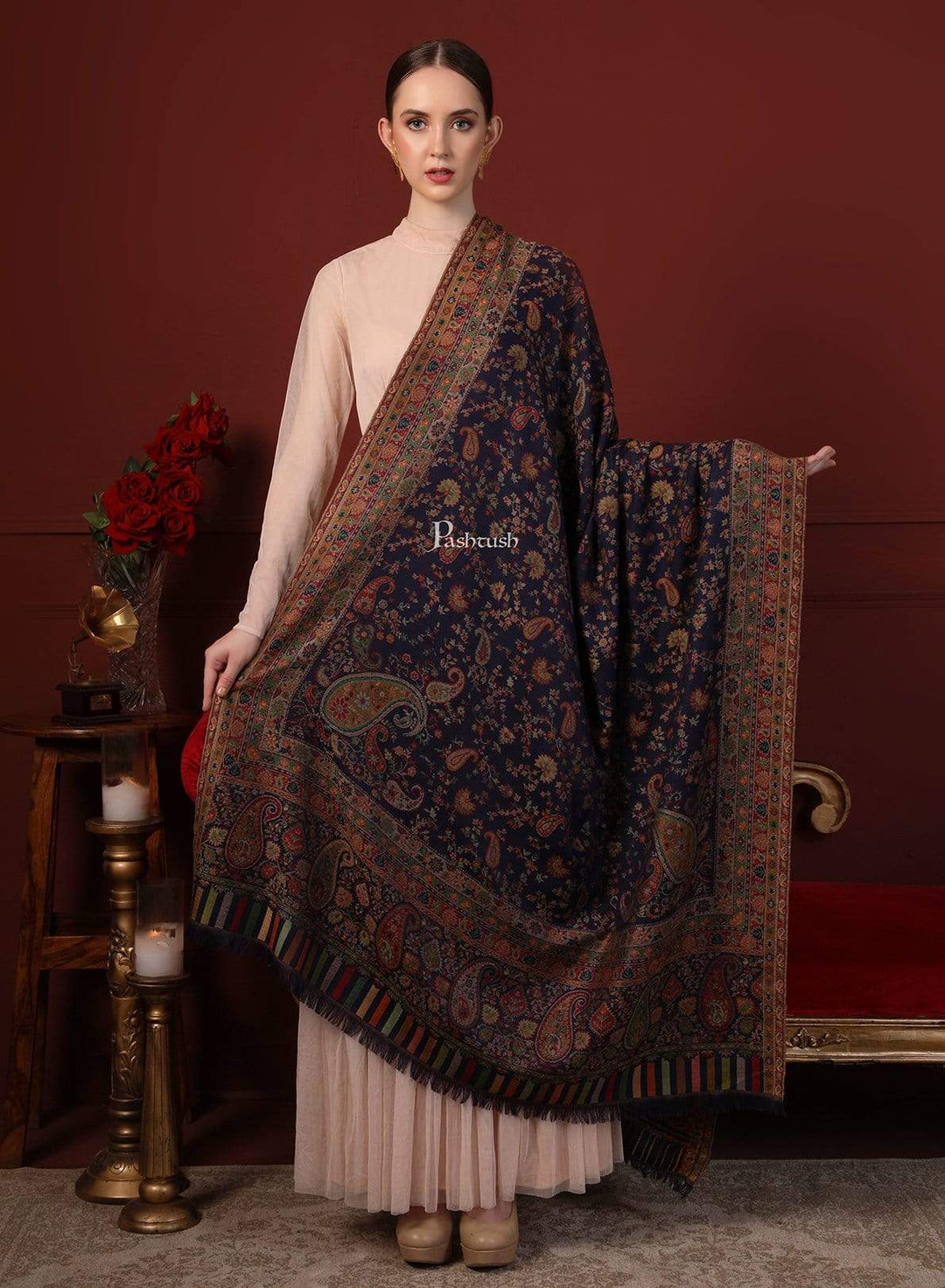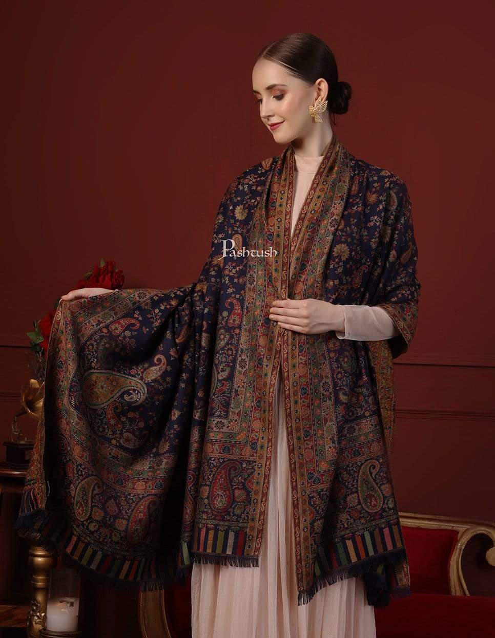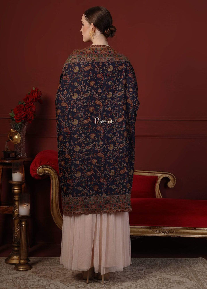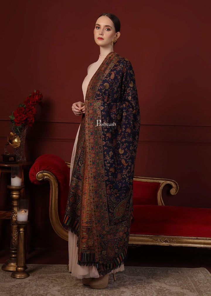 Pashtush Womens Faux Pashmina Ethnic Weave Shawl, Navy Blue